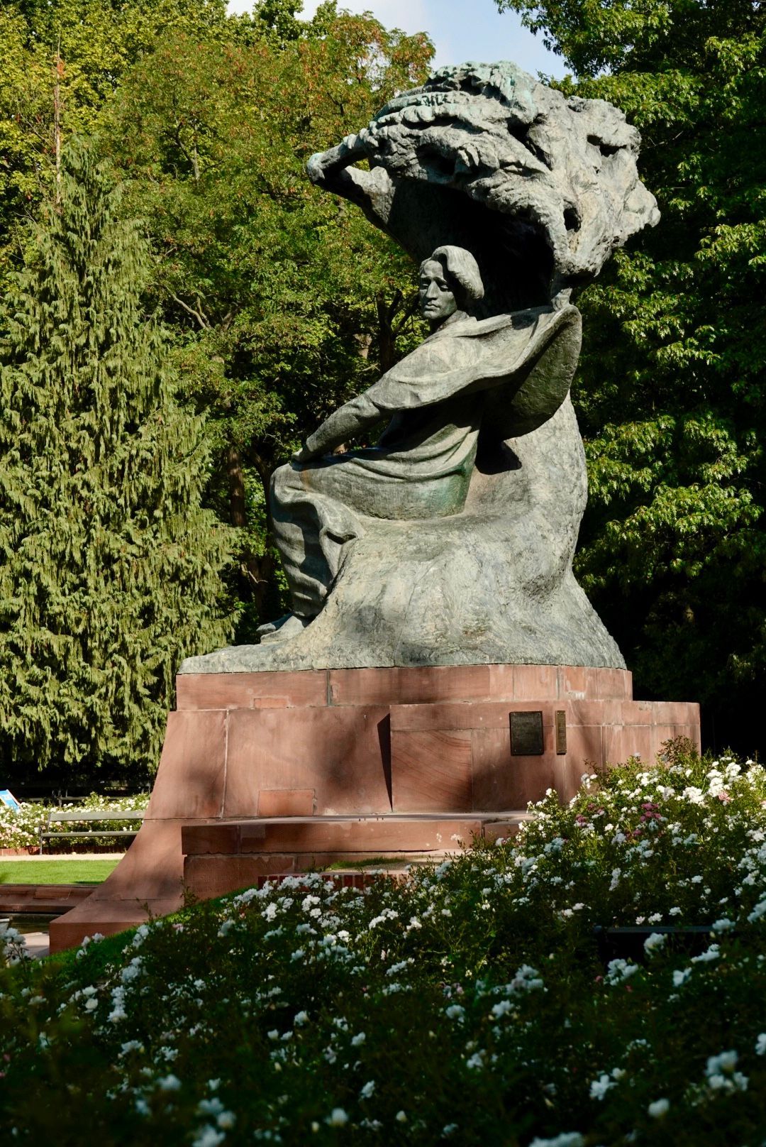 Beautiful park in Warsaw. Chopin statue,