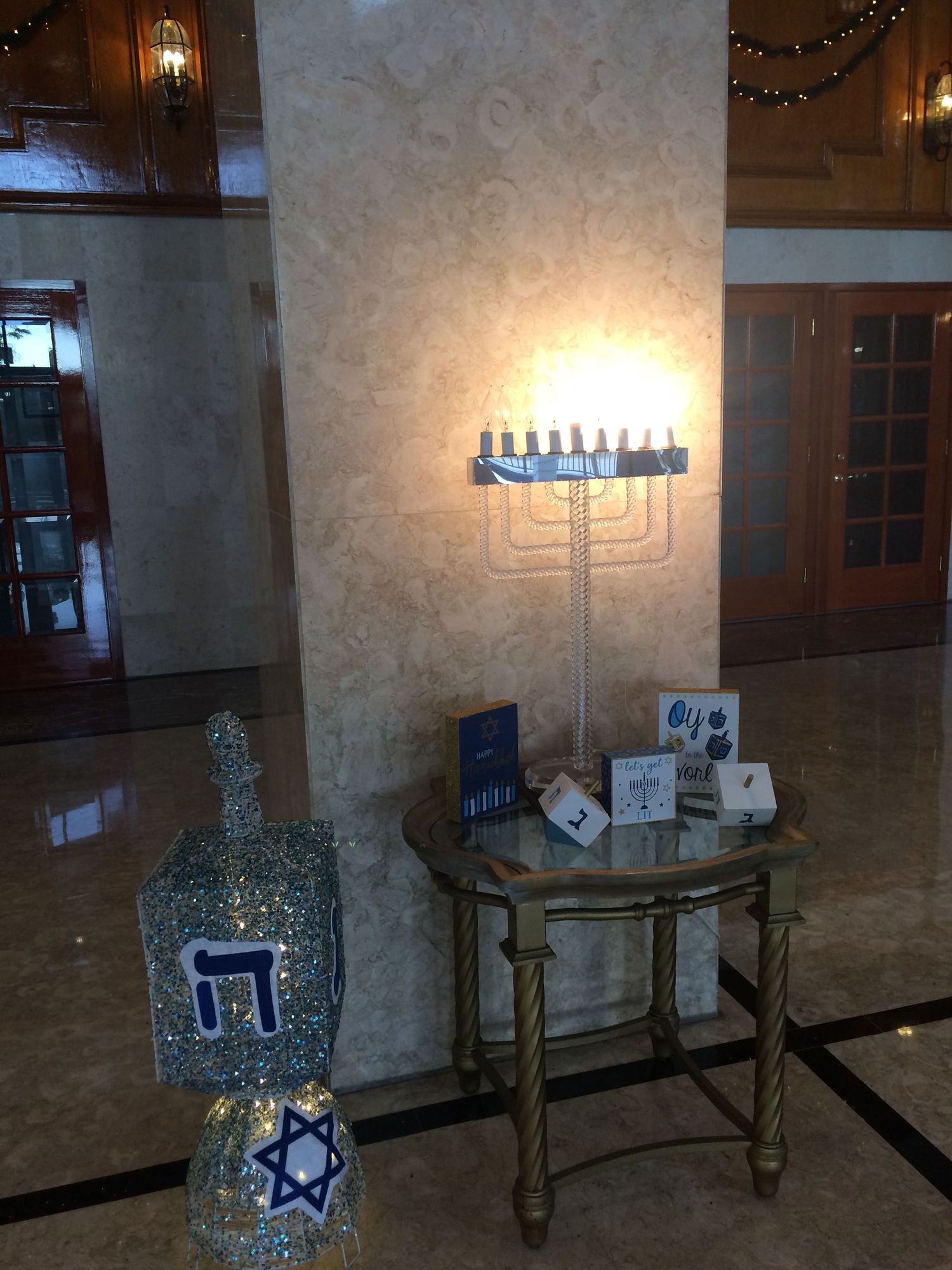 Hanukkah decorations in the lobby
