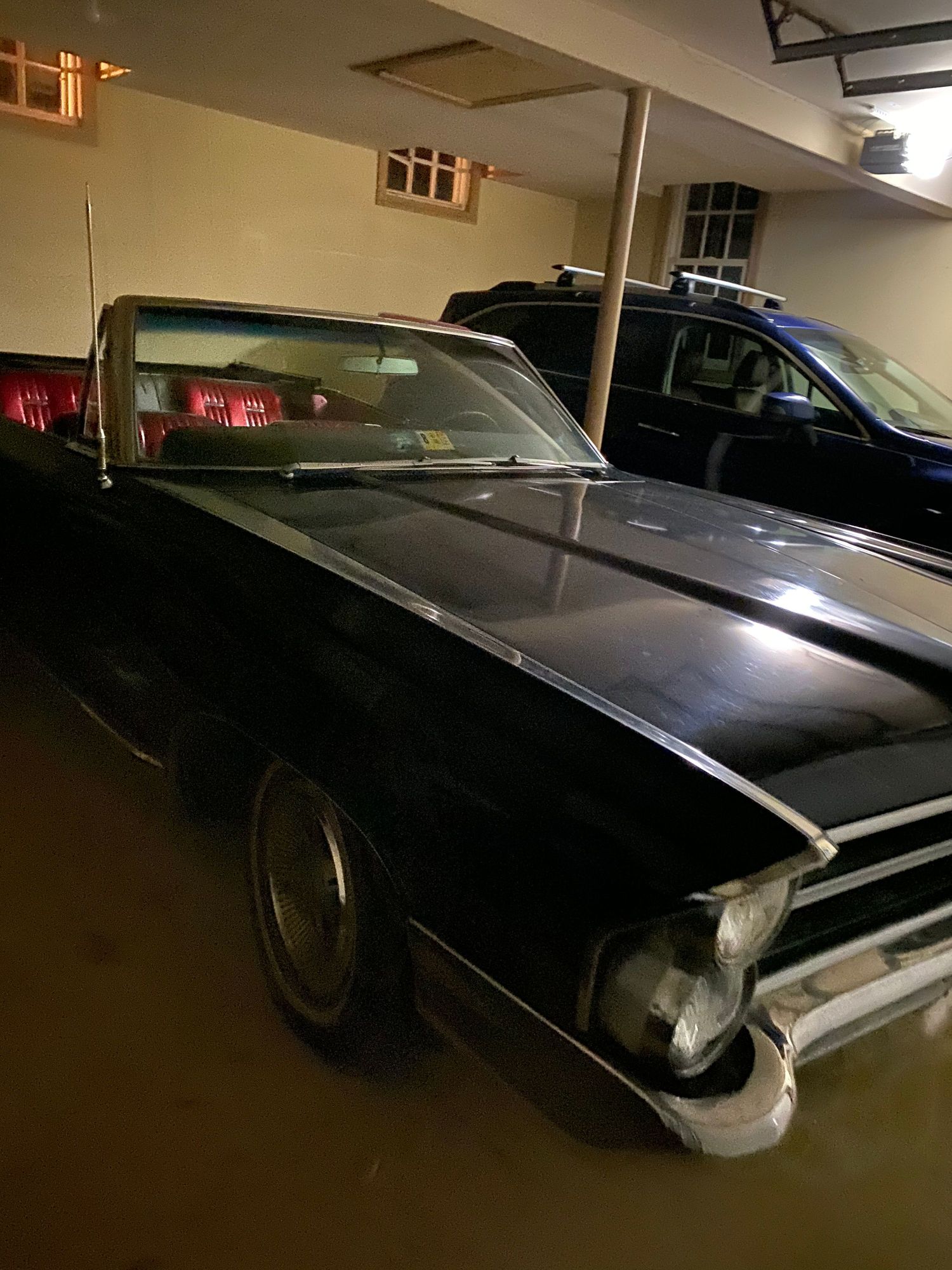 DH inherited a Bonneville convertible from his dad. It’s a 66 or 67 I think. The red, white, and blue colors make it a perfect car for Fourth of July parades.