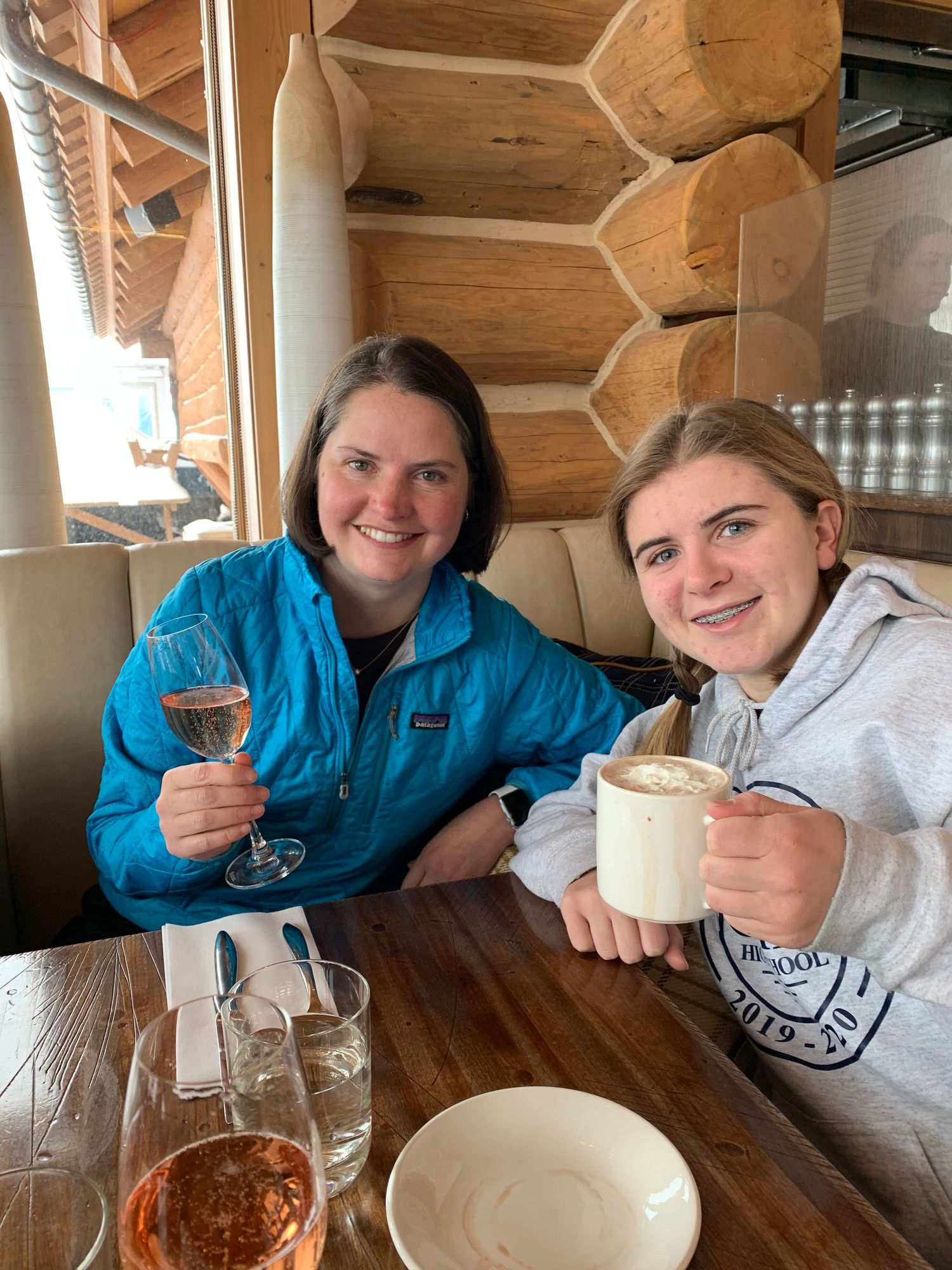 Lunch break. We had sweet potato fries and tater tots for lunch, plus champagne and hot chocolate. (As one does.)