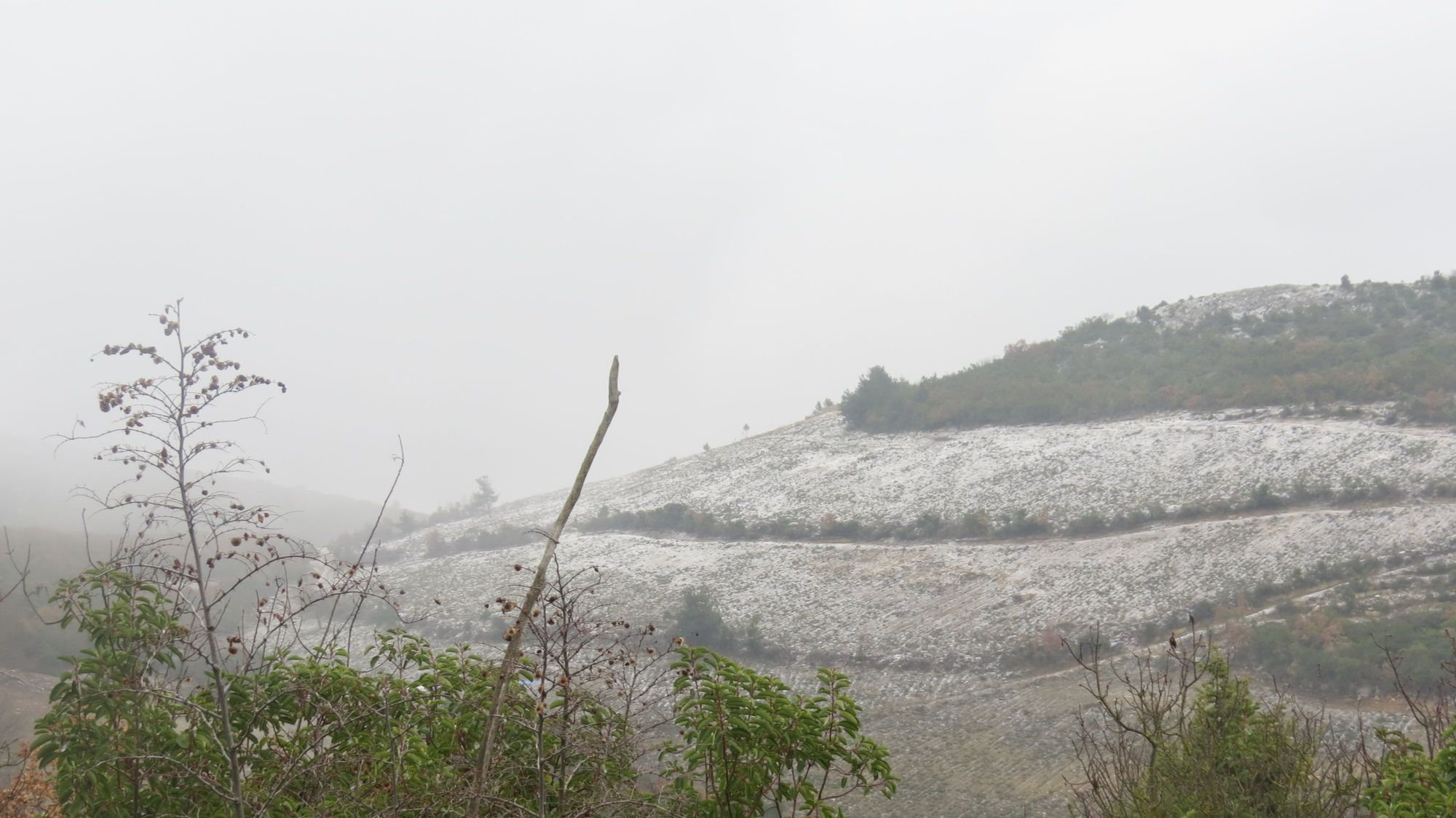 Snow starting as we climb the mountain towards Sansarak village Eser starts to nag for immediate return.