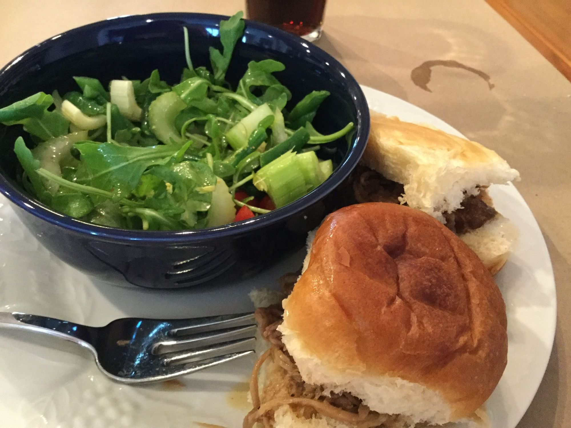 Lunch. I am doing it properly, sitting down at the take with a napkin and cutlery and not eating on the fly as we did whilst unpacking.