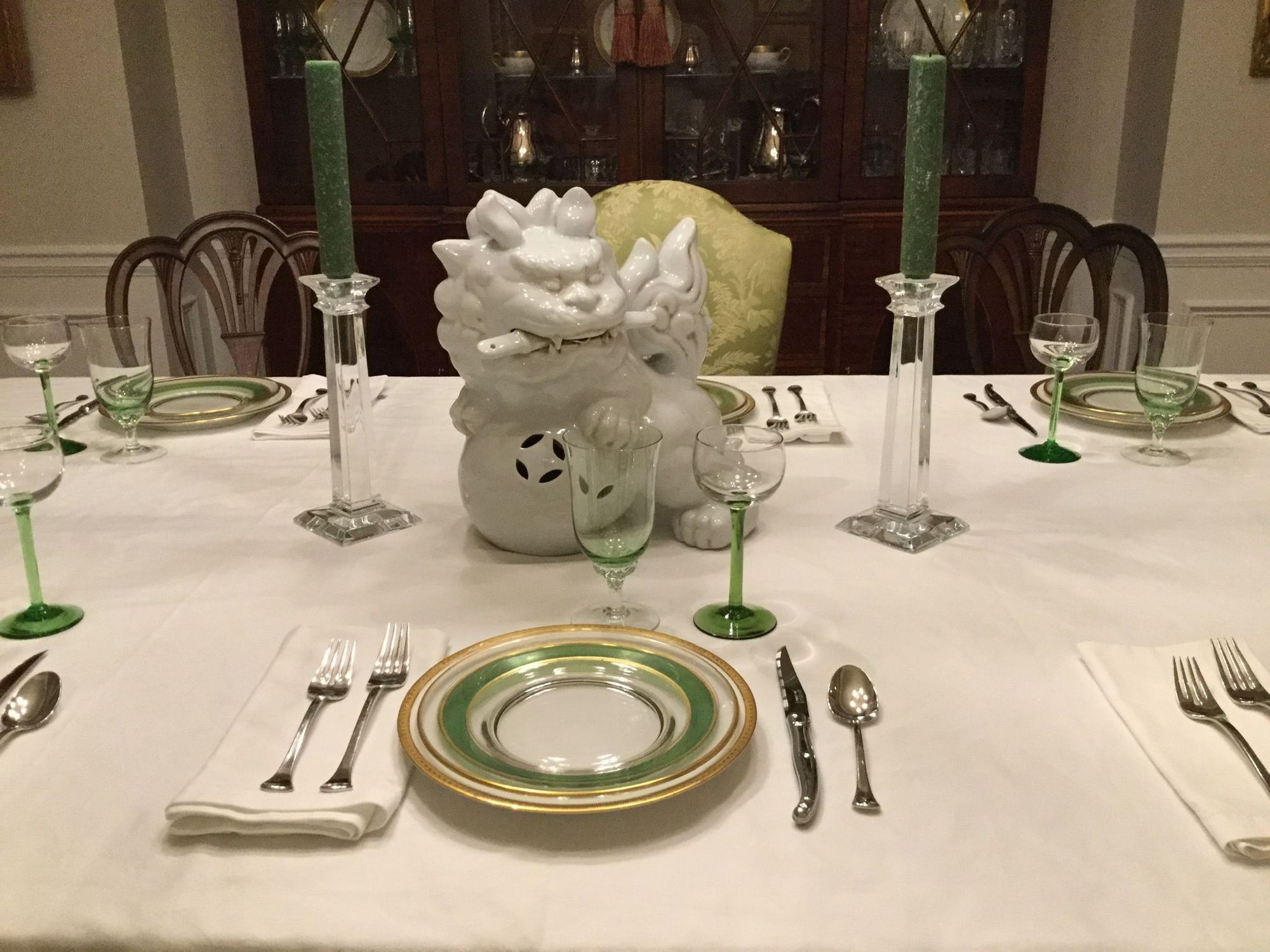 In case I don’t find any wonderful flowers at the market tomorrow, Foo Dog comes to the rescue as a centerpiece.