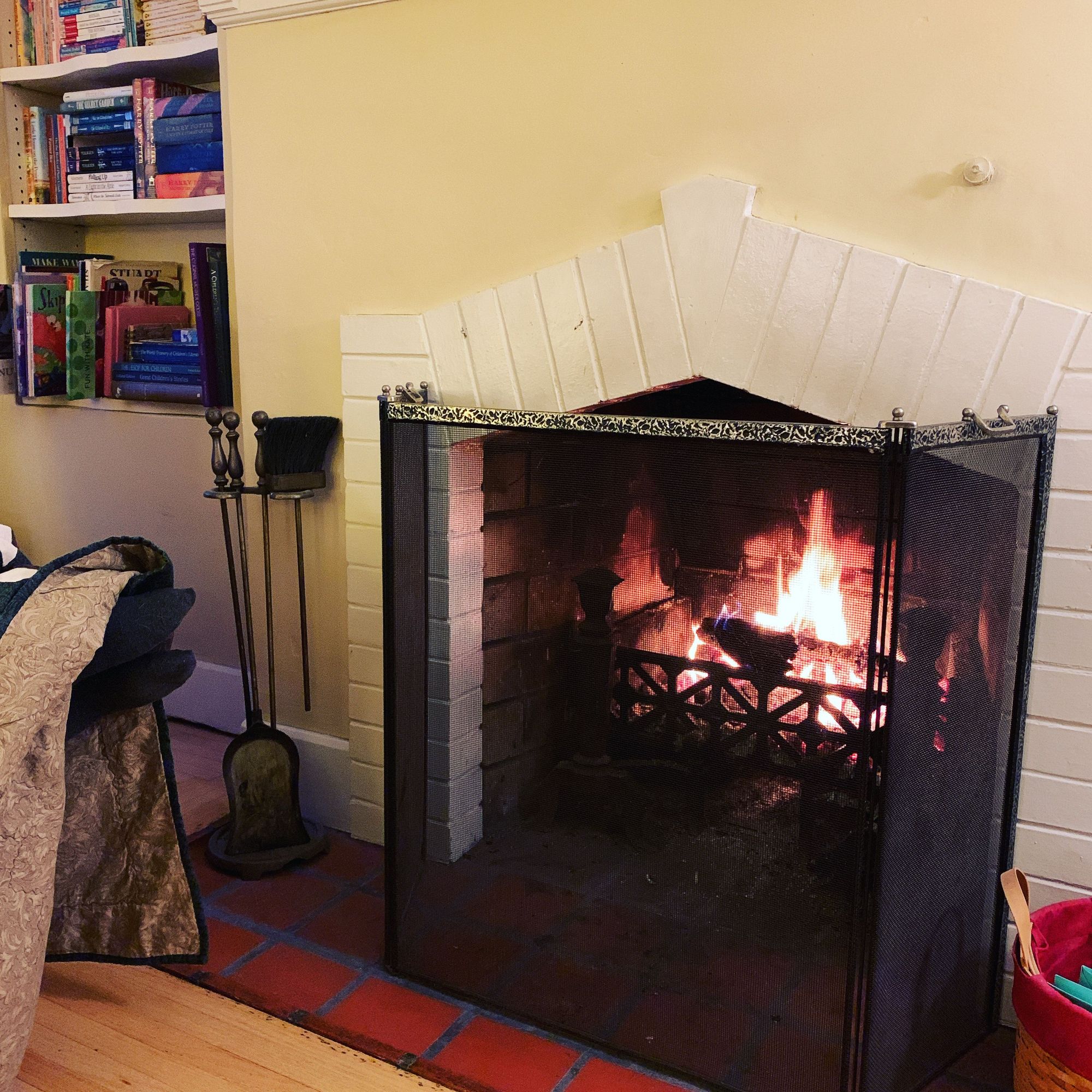 A fire this evening with daughters feet and a quilt made by MIL making a cameo.