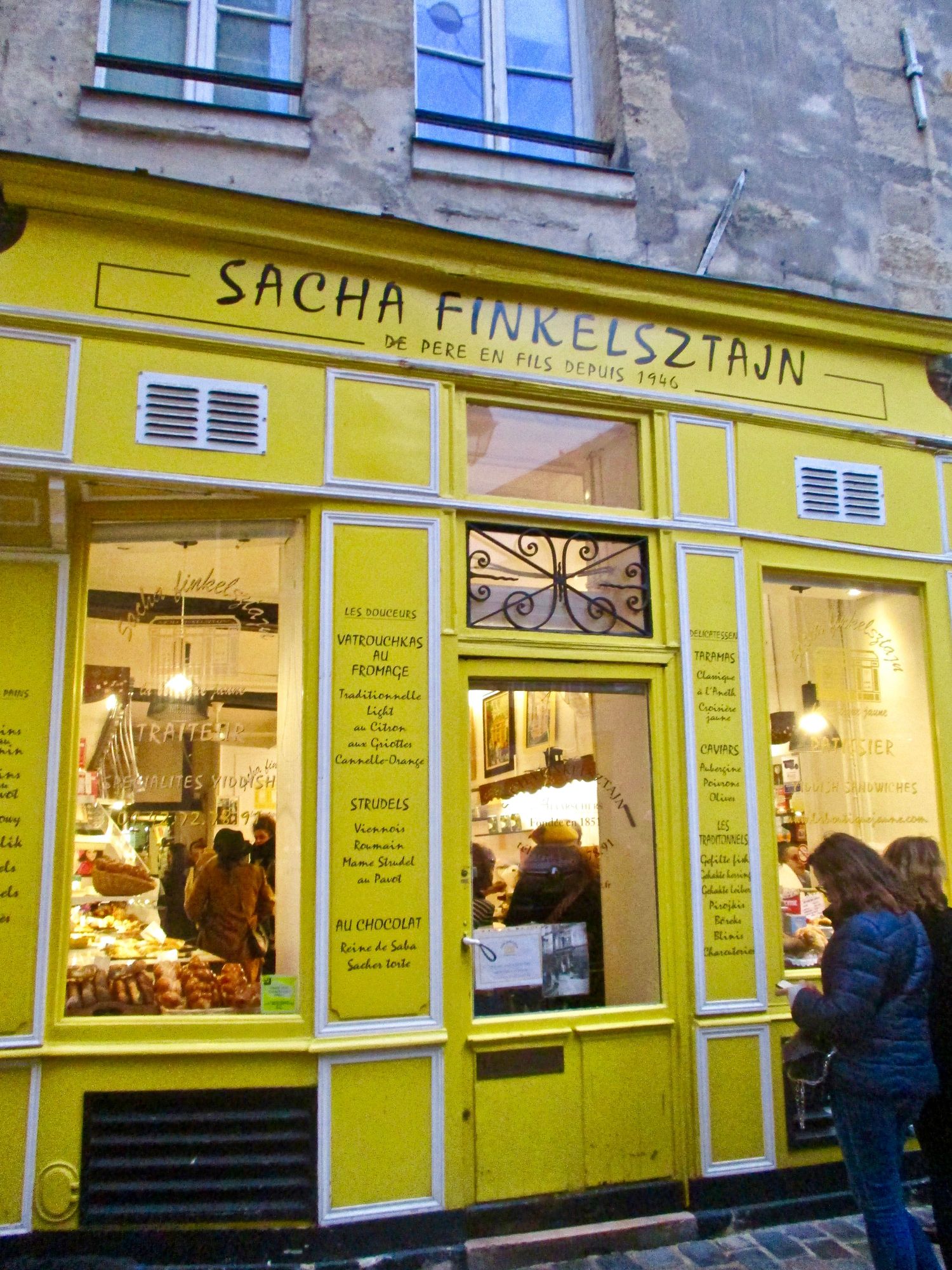 Florence Finkel-way-too-many-Polish-consonants-stein in the rue des Rosiers. We're coming back here to load up on bagels and bialys before we head home.