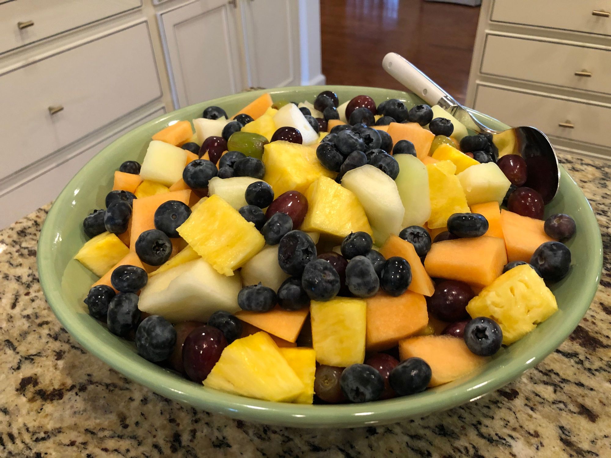 Cantaloupes honeydew, pineapple, grapes and blueberries....it was all I could fit into the bowl :)