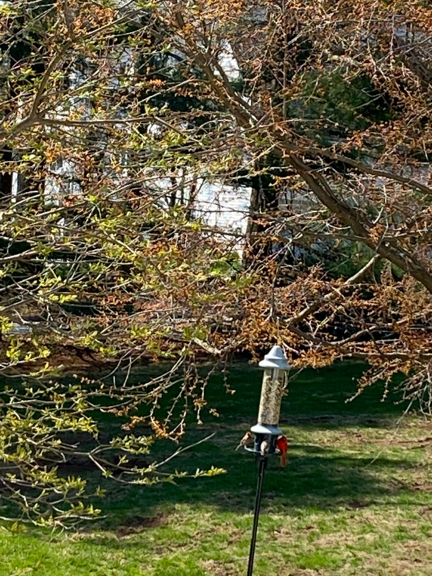 It’s hard to see because I don’t have a fancy camera, but there is a crowd of birds at the feeder. And, lots of birdsong.