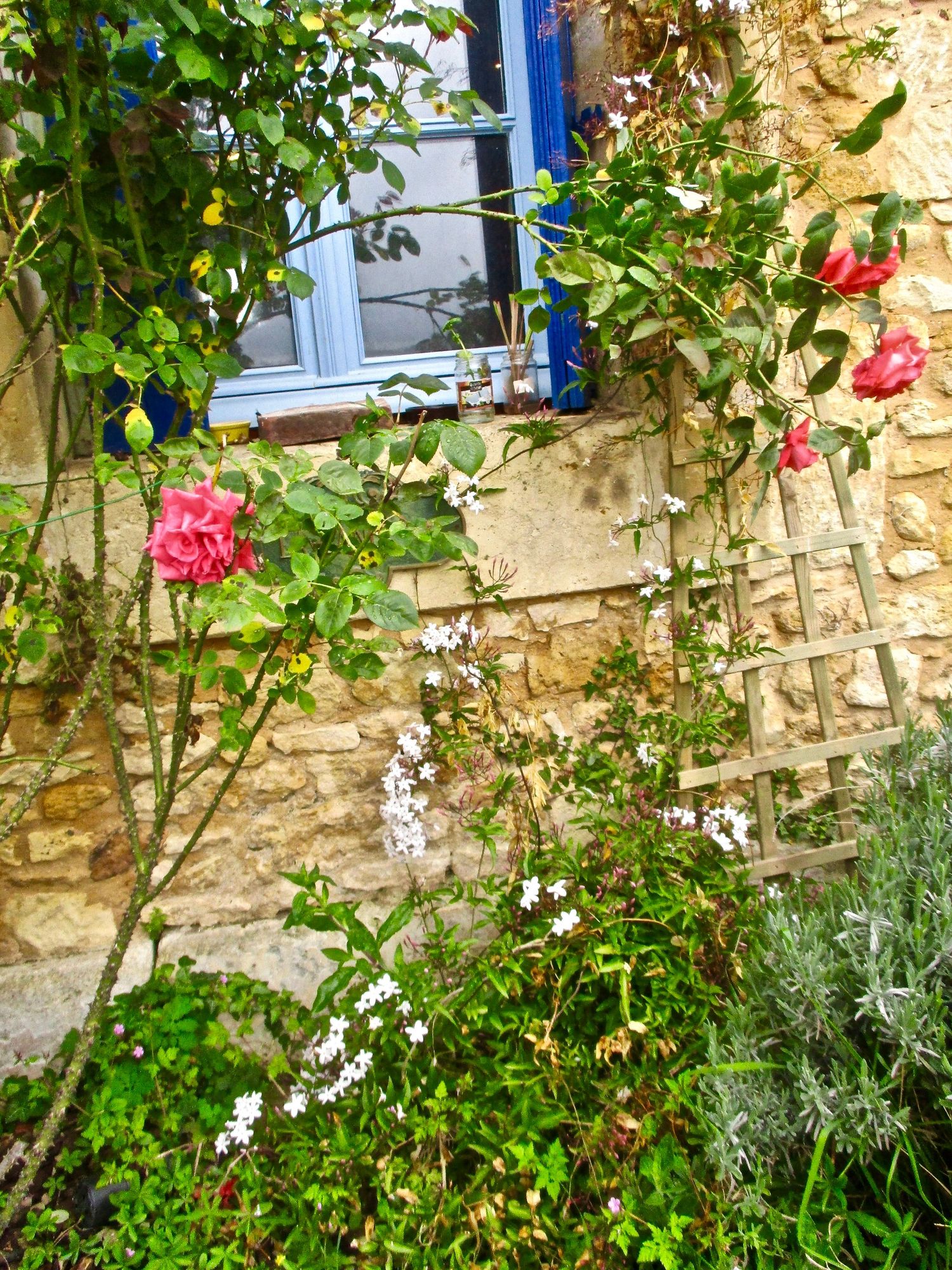 Jasmine is on the mend amid the roses (both need major cleanup)