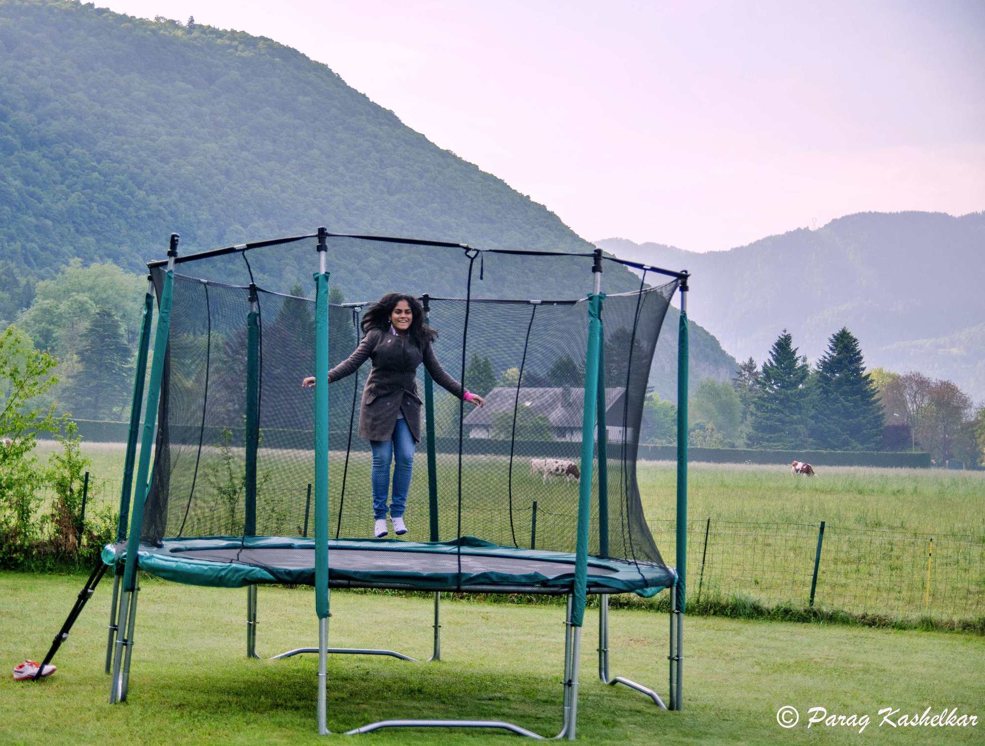 Priyanka enjoying trampoline before we left in the morning