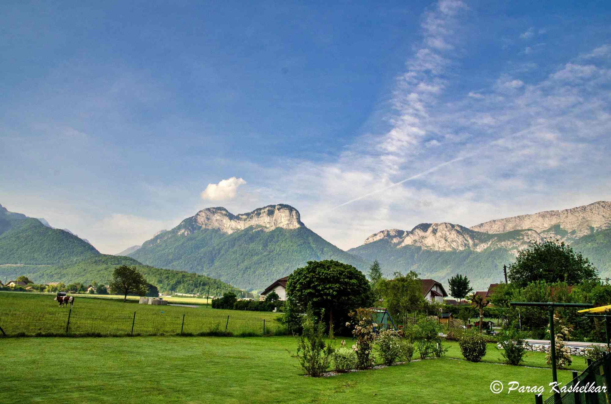 It was bright, sunny and cheerful morning. We had one of the best view from our villa itself. Lush green meadows, picturesque village, cows in the farms, majestic mountains all around.