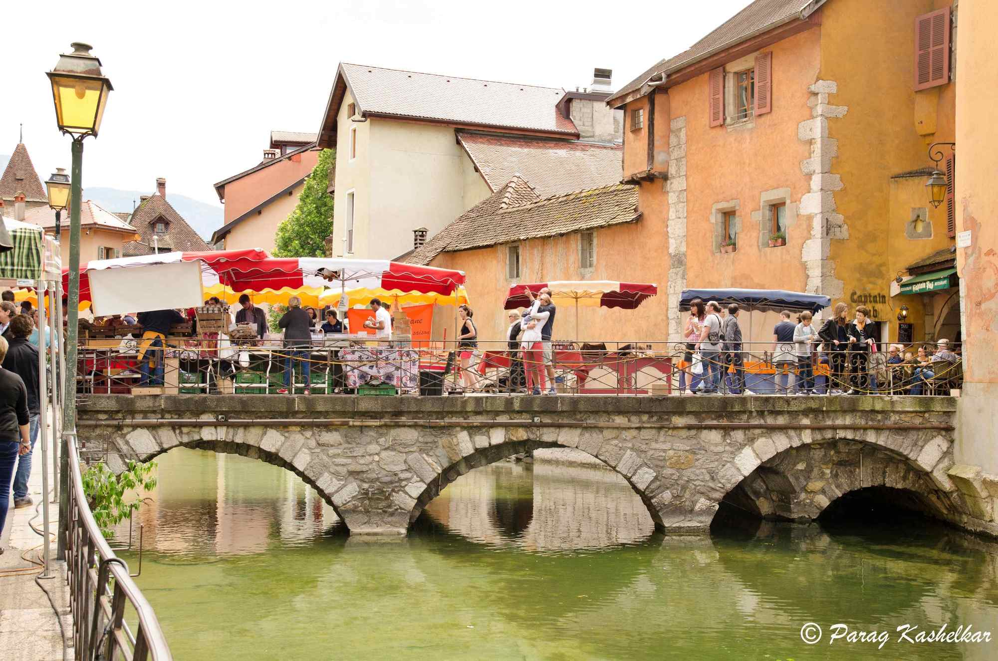 Walking around Annecy old town is a real delight. With its charming canals, its flower-bedecked banks, its small delightful bridges and its beautiful houses with colourful facades,
