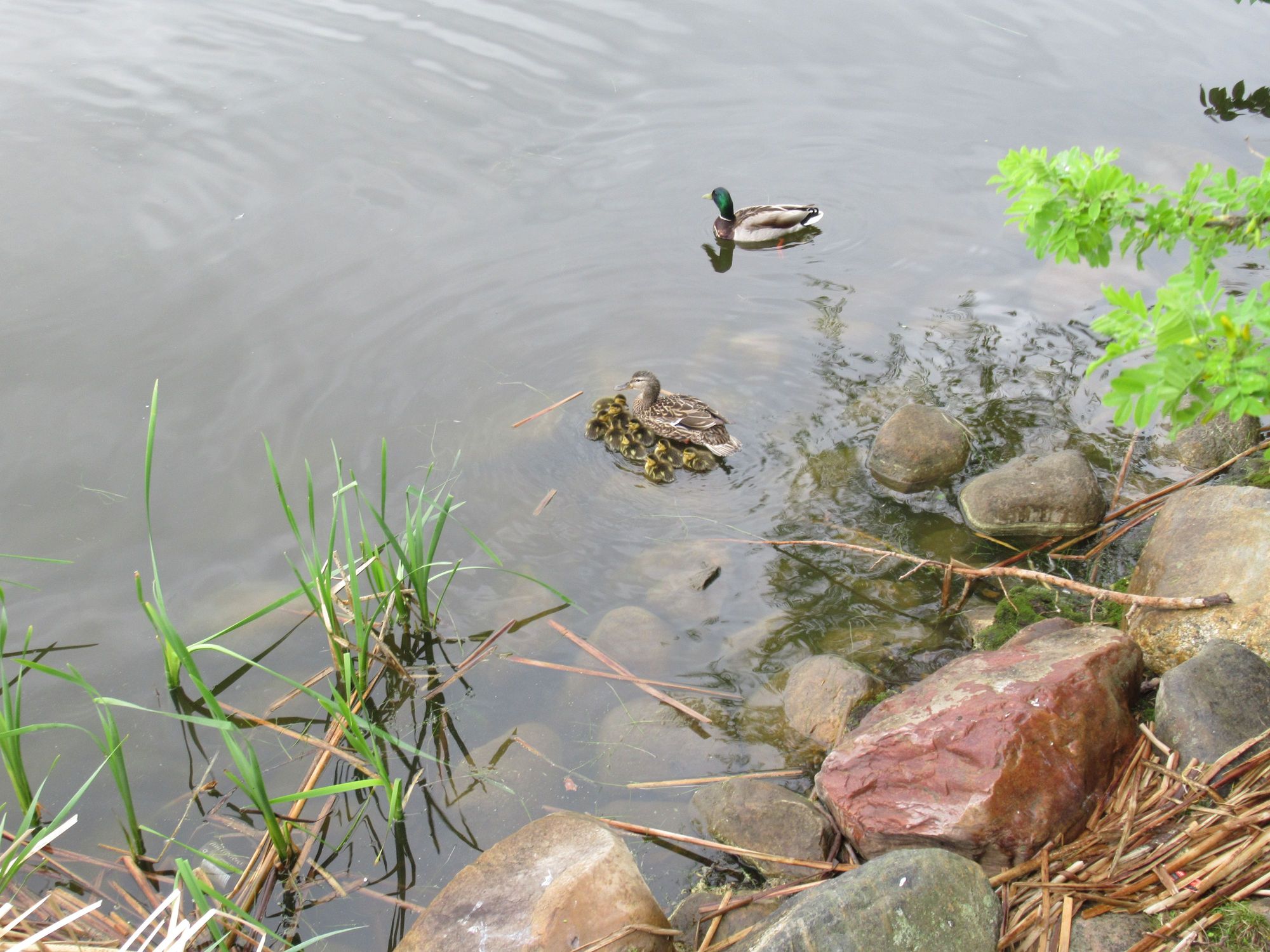 Here she is on the water, one is hiding inthe reeds in the lower left corner