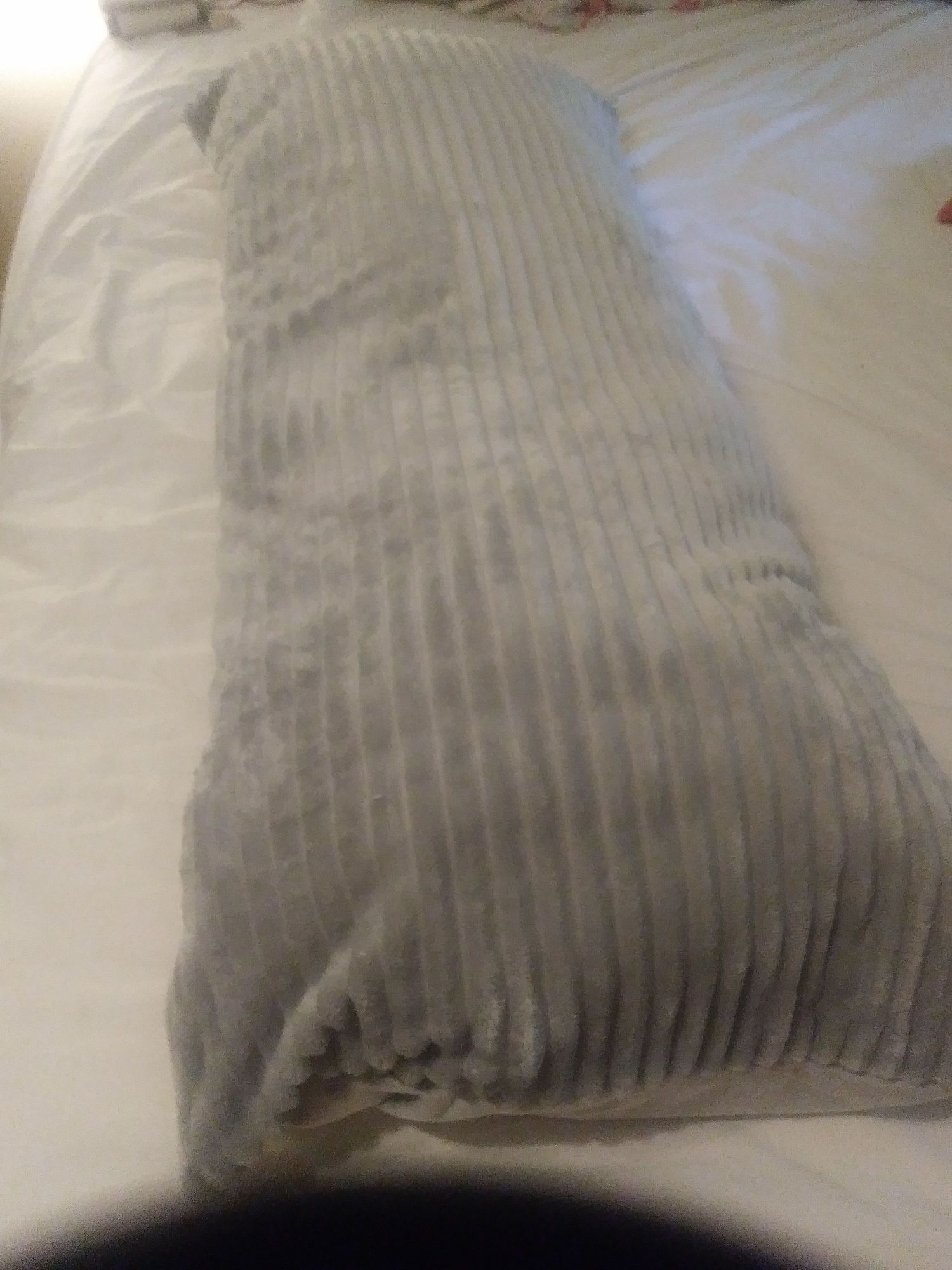 Walmart "Your Zone" 100% polyester 20" x 48" (51 cm x 122 cm). The underside is smooth. The top has a soft channel design.
