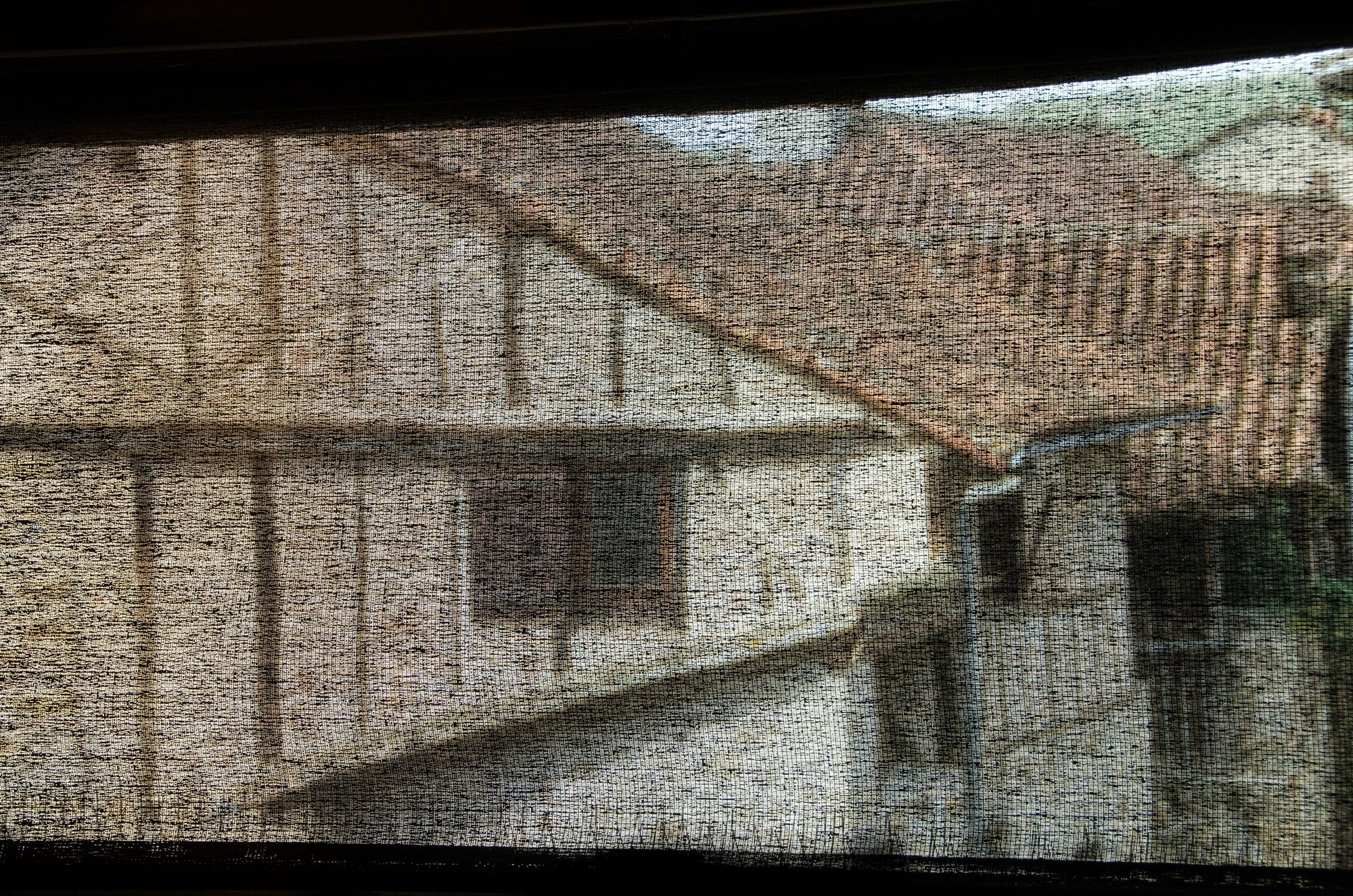 Figeac through a screened window in a musee.