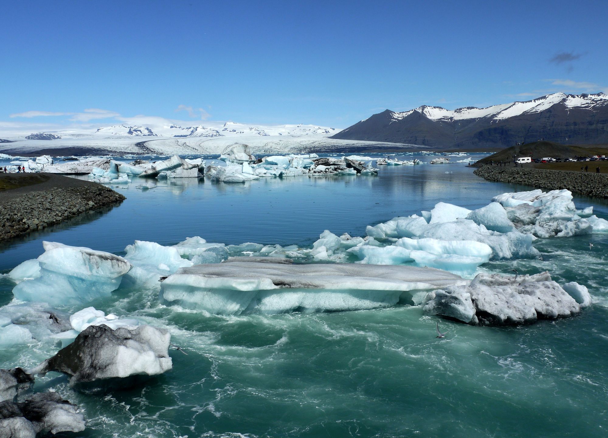 Jökulsárlón, a glacial lagoon bordering Vatnajökull National Park. Iceland, June 2017