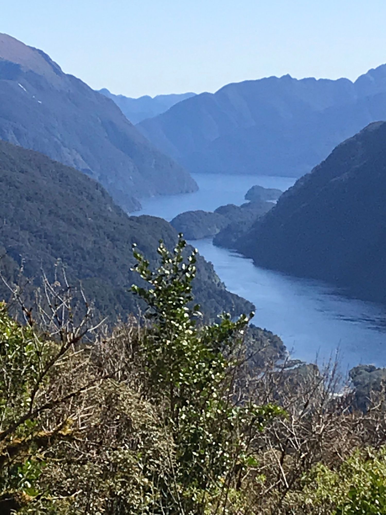 From top of Wilmott Pass looking into Doubtful Sound. (Actually a fjord).