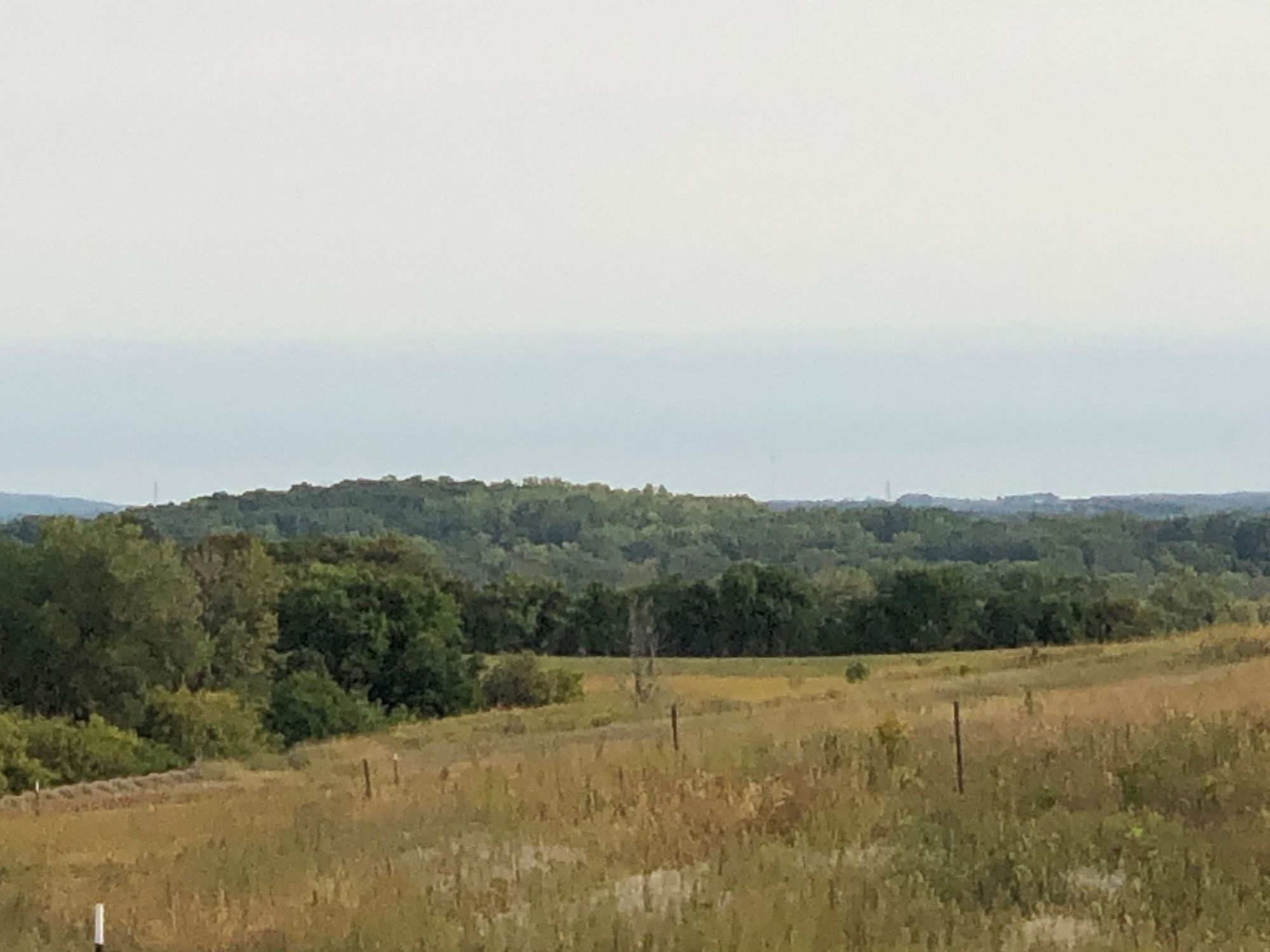 We are now getting some of the west USA fire smoke in Minnesota. The towers just over the tree line are 8 miles away. Usually you can see the Powder Ridge ski hill located 18 miles away but the smoke is blocking it. Still not bad air. The morning sun rise was spectacularly red today.
