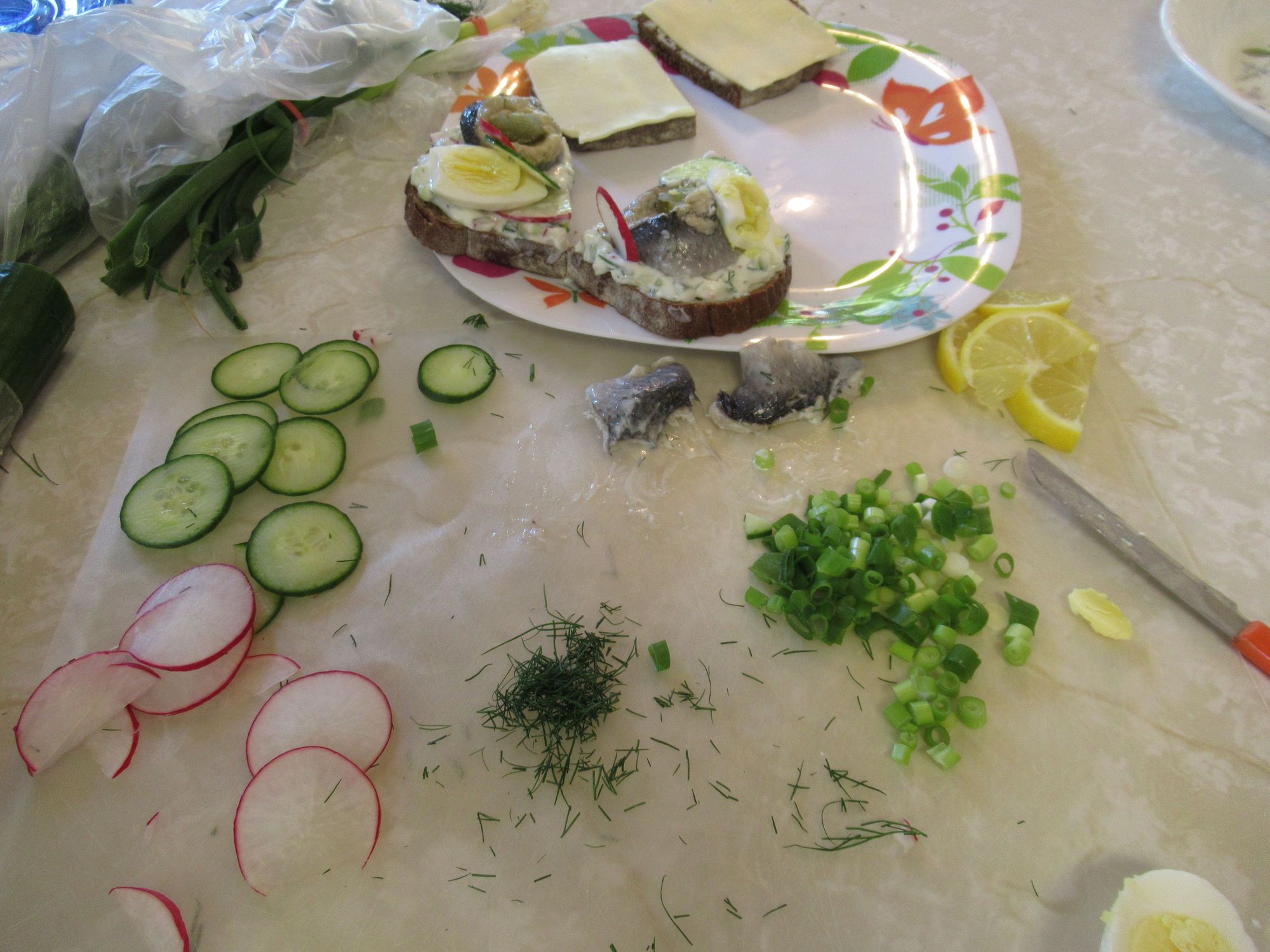 Just starting to prepare some of the open sandwiches.