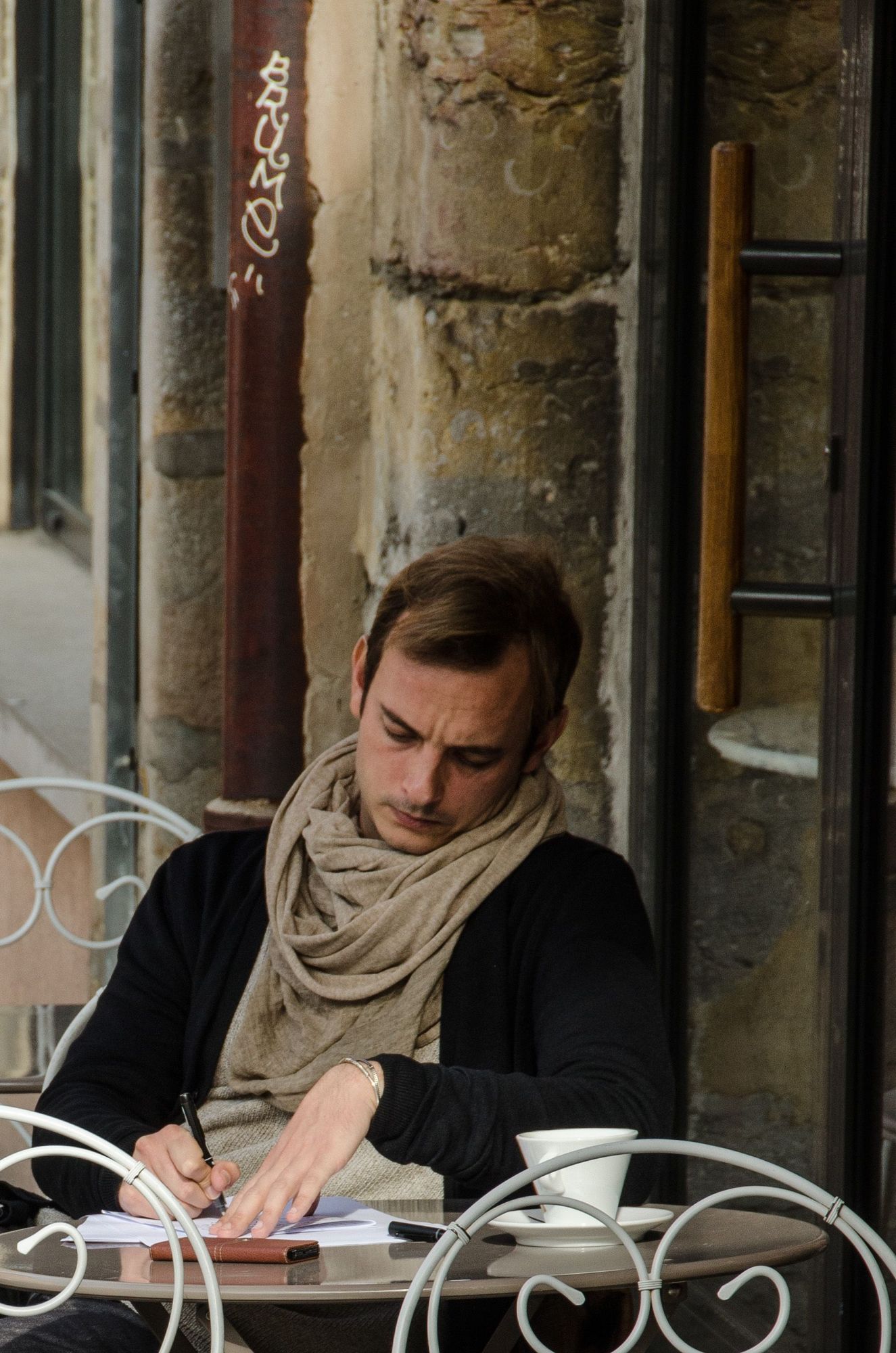 Cafe writer in Vieux Lyon.