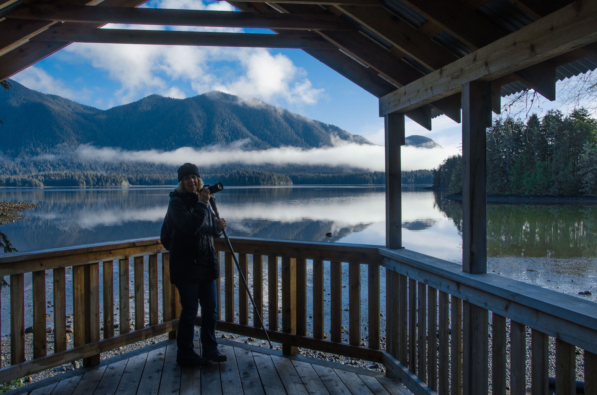 Happy Shutterbug enjoys north shore behind Tofino Botanical Gardens.