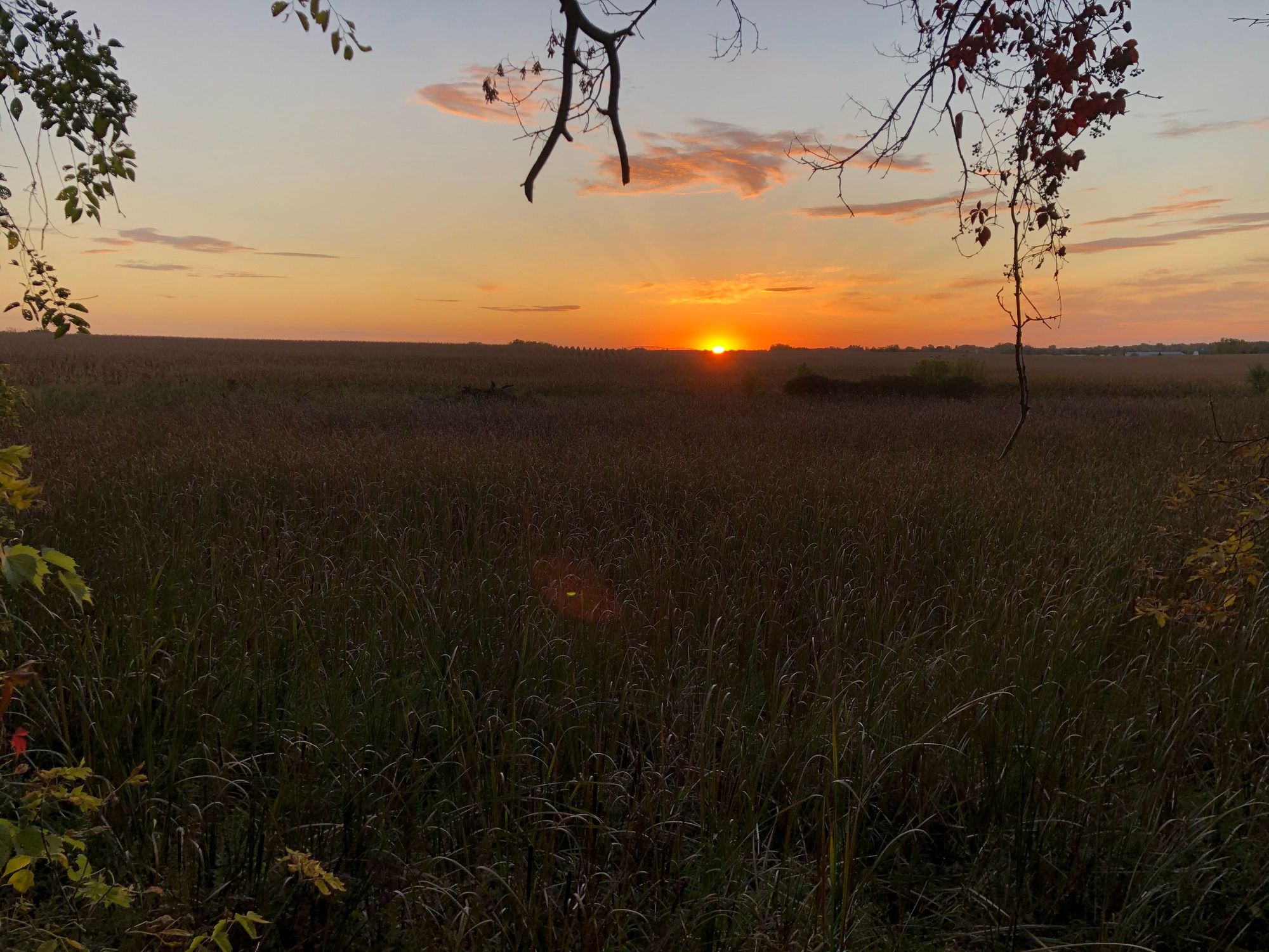 sunrise from my shop. Ordinary Minnesota view, swamp/trees and a corn field.