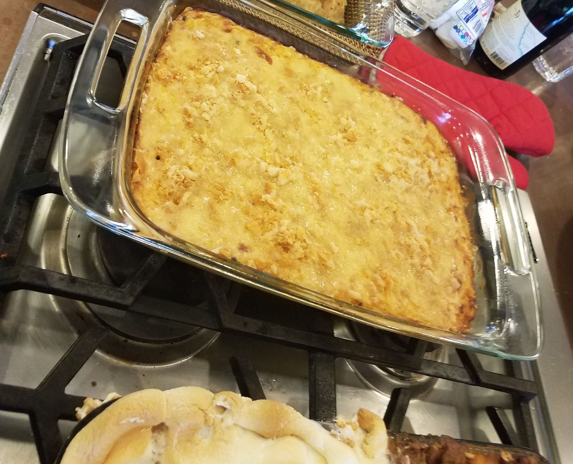 Squash casserole. Usually the dressing is put next to the turkey because it can be hard to tell the difference between the squash casserole and the dressing. Stuffing would be immediately recognizable (blocky chunks of bread).