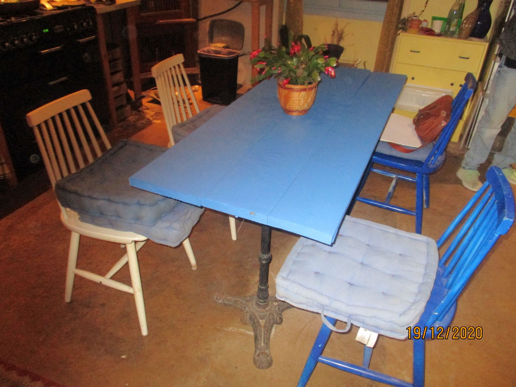 Clem renovated and painted an ancient table for our kitchen