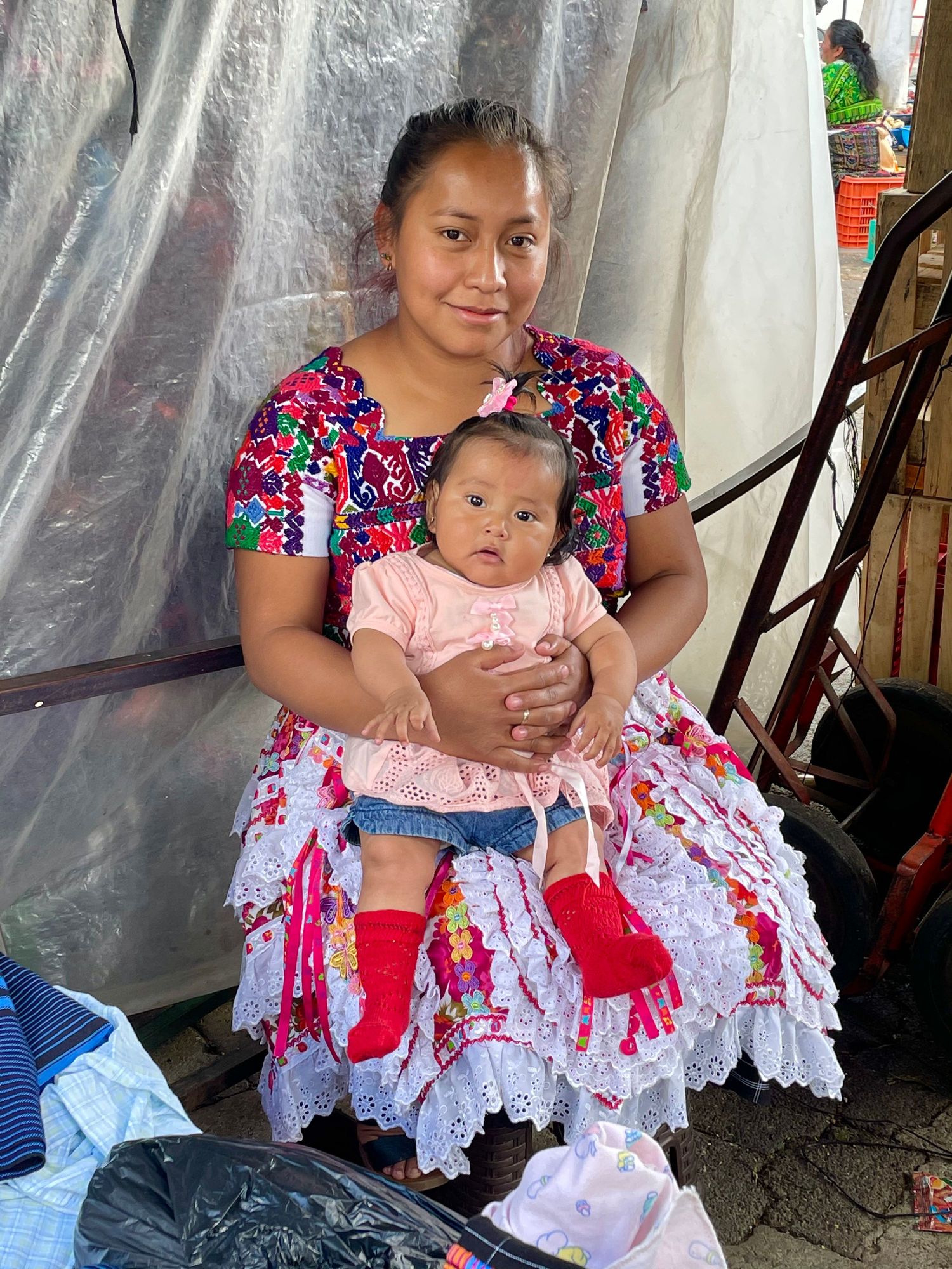 A mother and child in San Antonio Aguas Calientrs. We bought textiles from her mother.