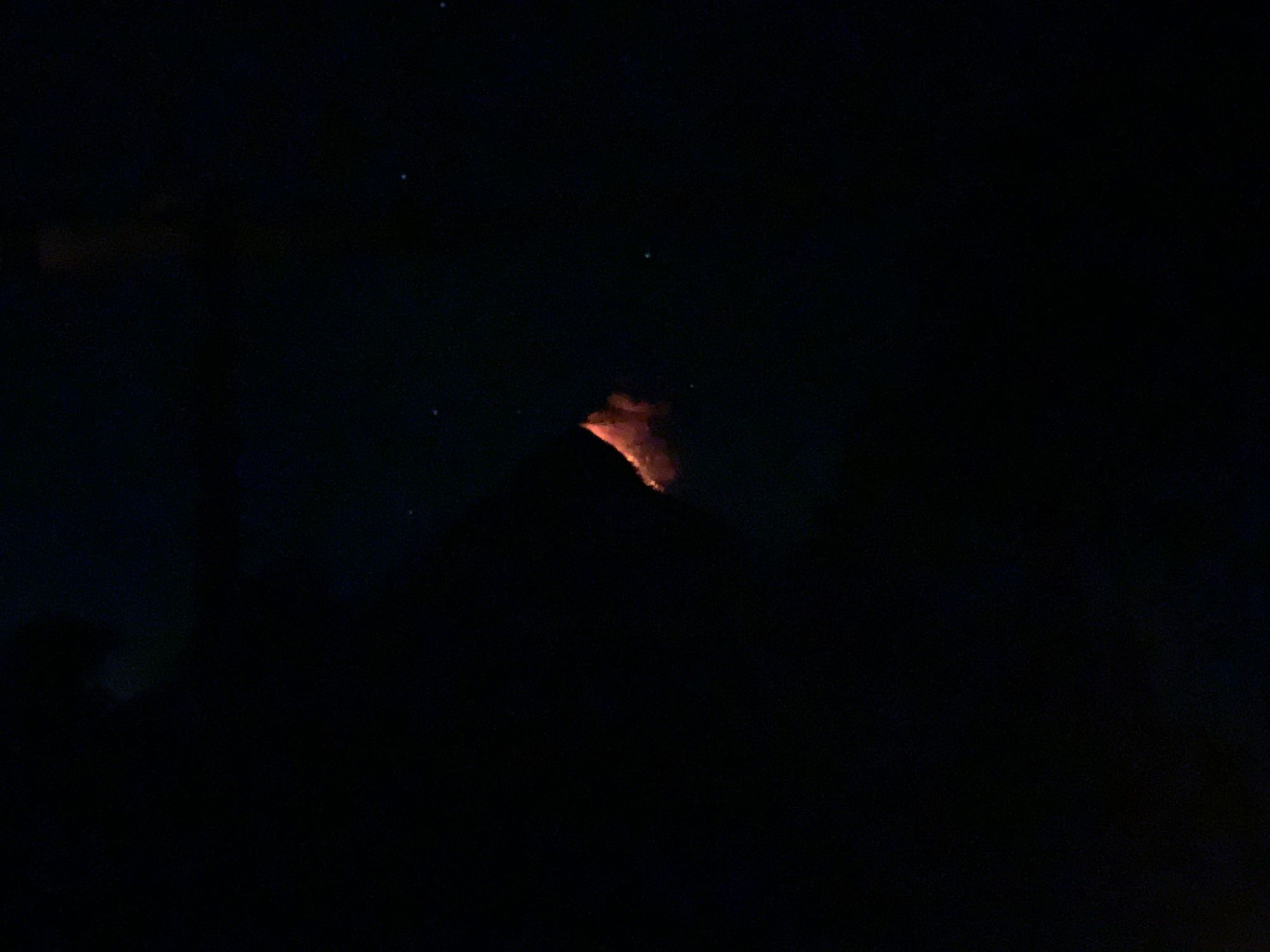 Lava from Fuego. It’s hard to capture lava eruptions as they are over and done with so quickly. Fortunately, I saw an AMAZING one at 3:00 am that morning when I opened the tent to pee. Lava exploding from Fuego like fireworks and running all down the side. Unfortunately, my phone was turned off.