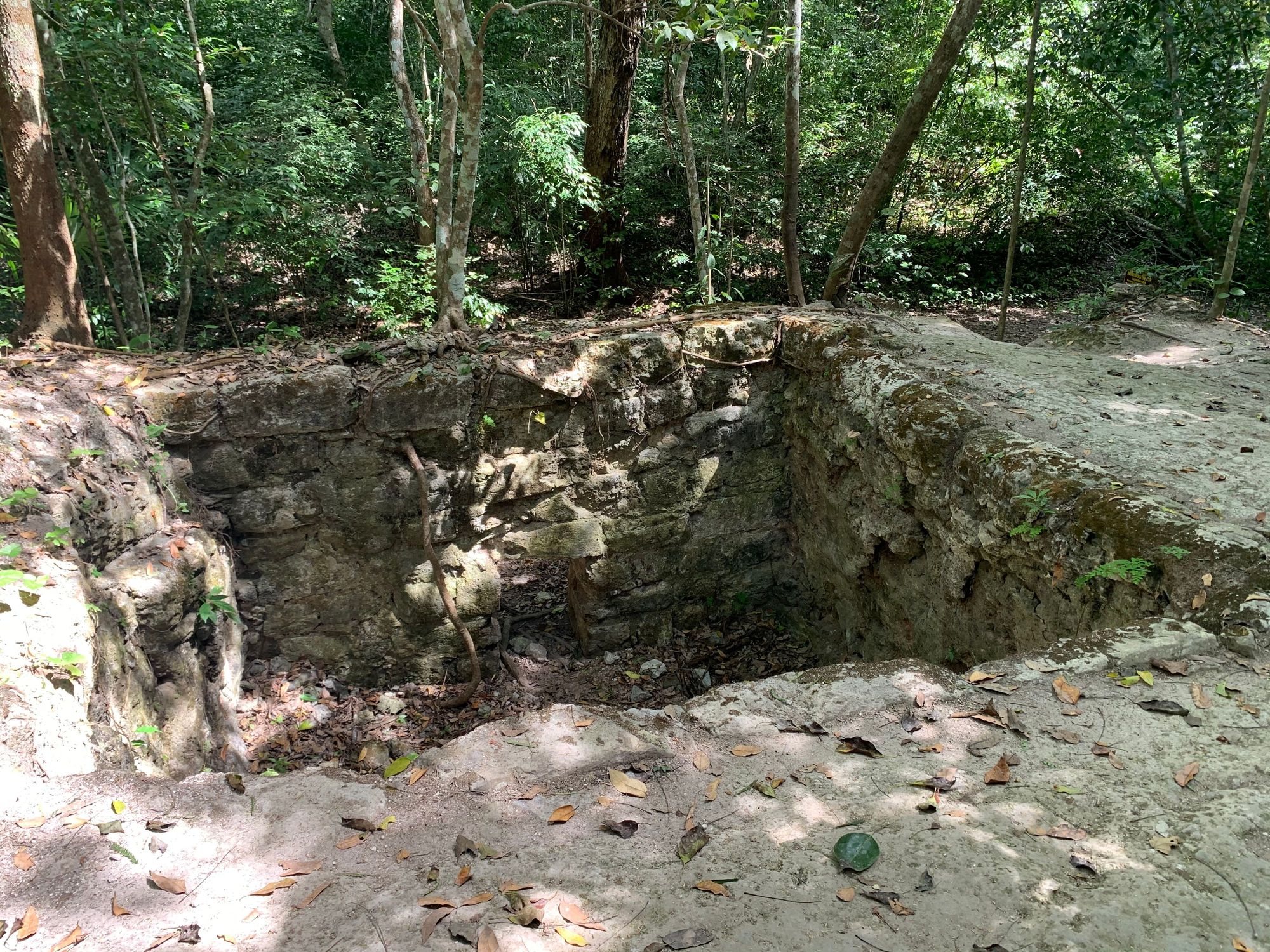 The pit where lime was melted down to make limestone for the construction of the temples and pyramids. Tikal.