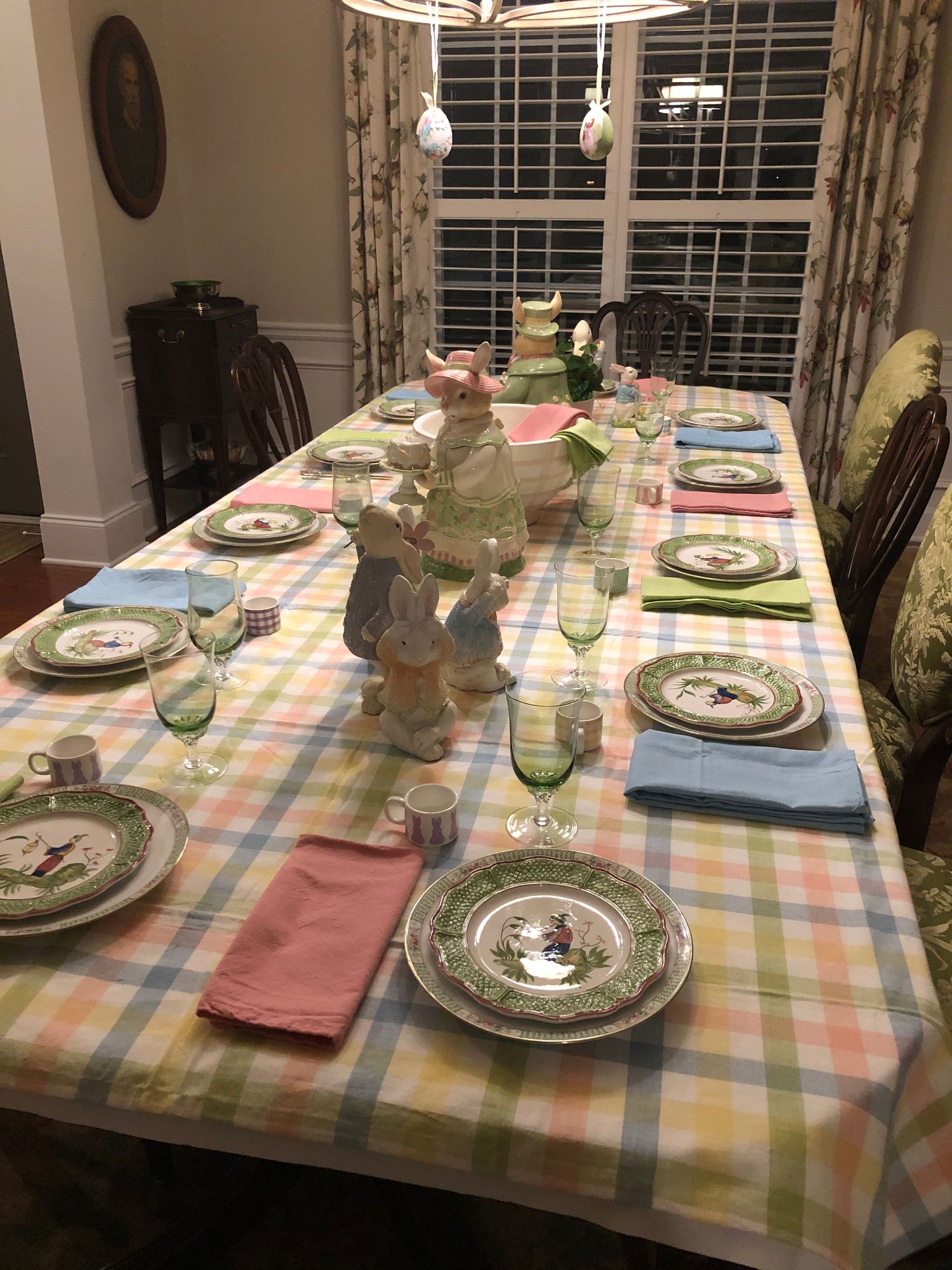 Since this iteration, finished the chandelier with 20 more eggs and moved the Vietri plates to the sideboard.