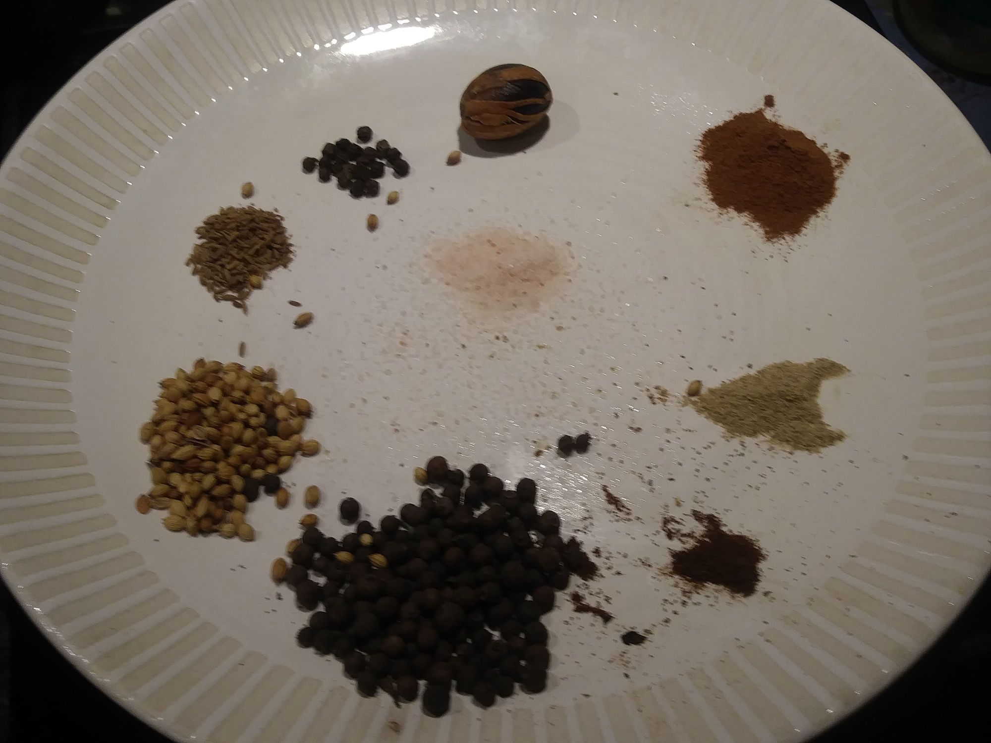 The nine spices including two from my Jamaica trip: allspice and whole nutmeg with mace.