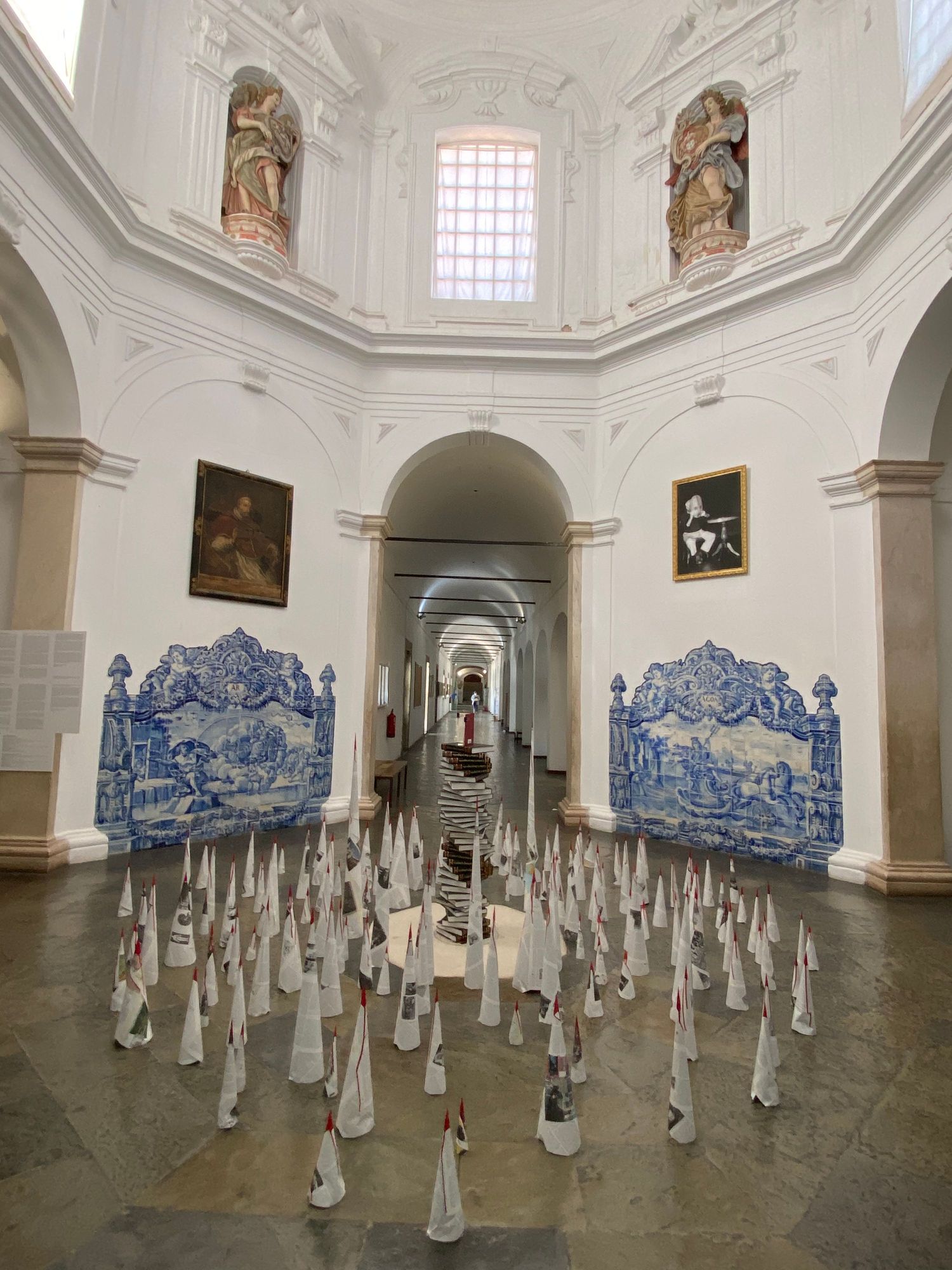 Art installation in the halls of the university competes with 300 year old azuléjos (but it’s really no contest).
