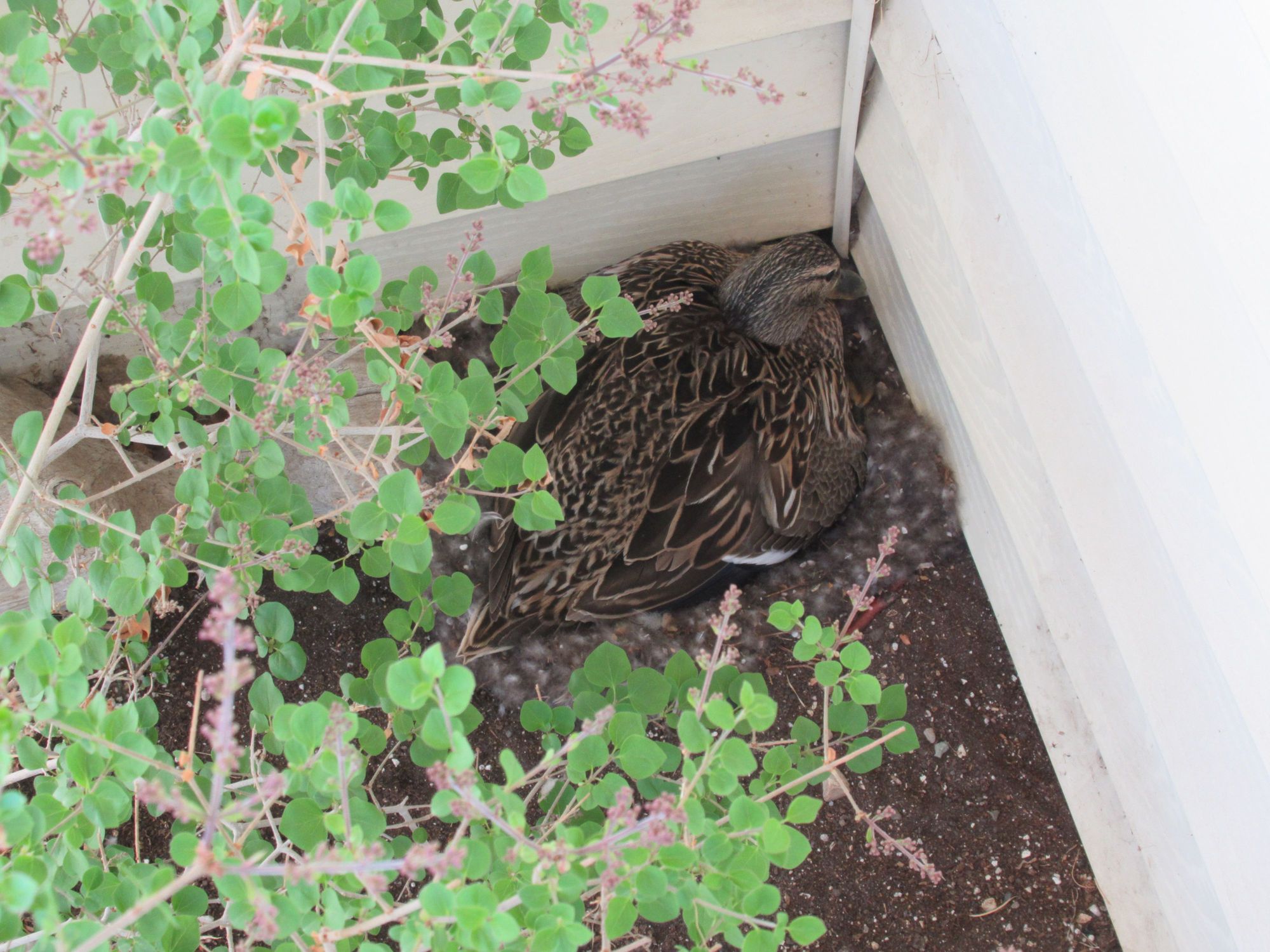 Update on the duck siting on her nest by my front door.