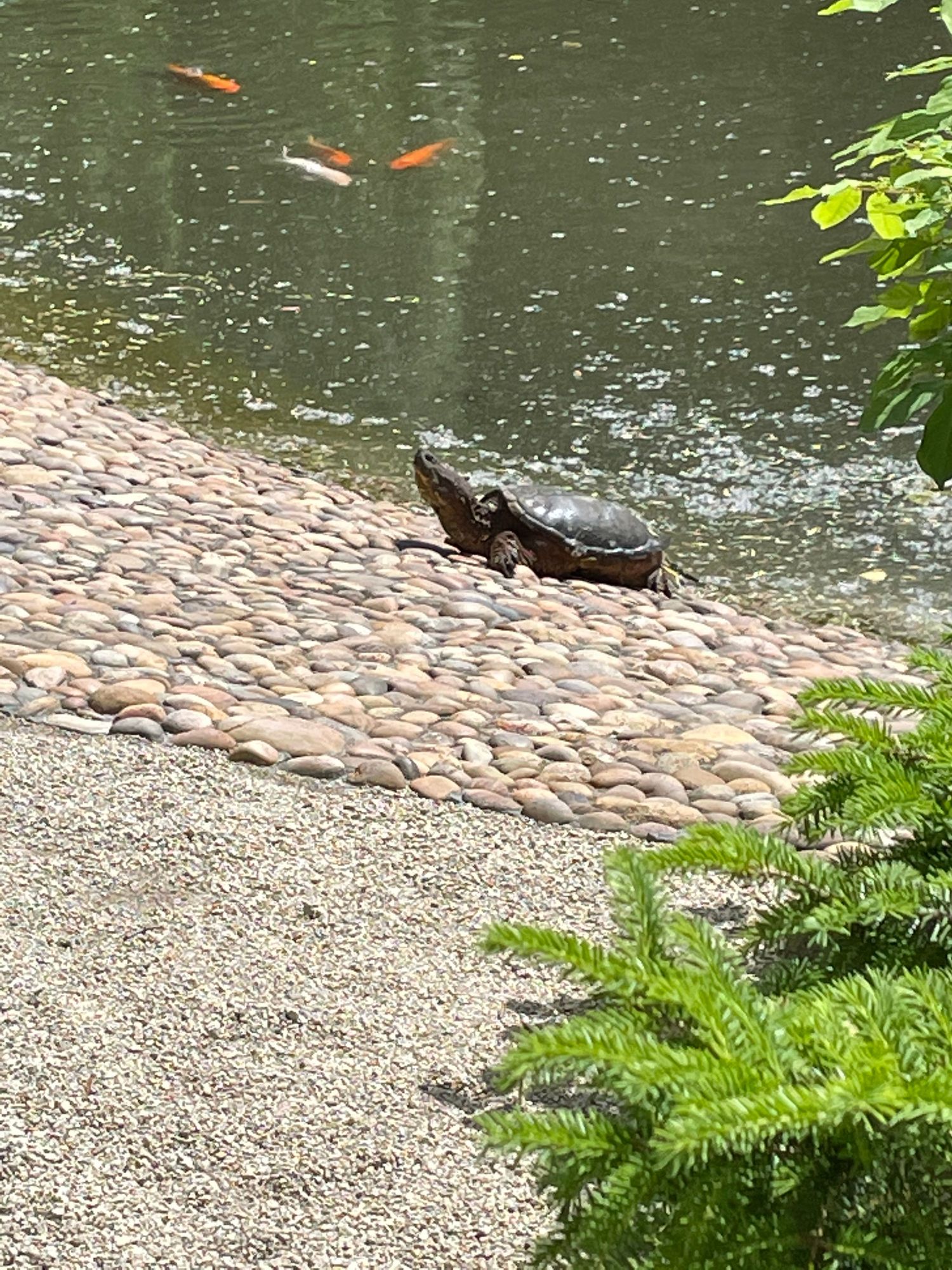 I made a new friend this week!! I was sitting on a bench talking with a friend and we looked up to see this big guy coming at us. Yikes!!! Big old snapper.