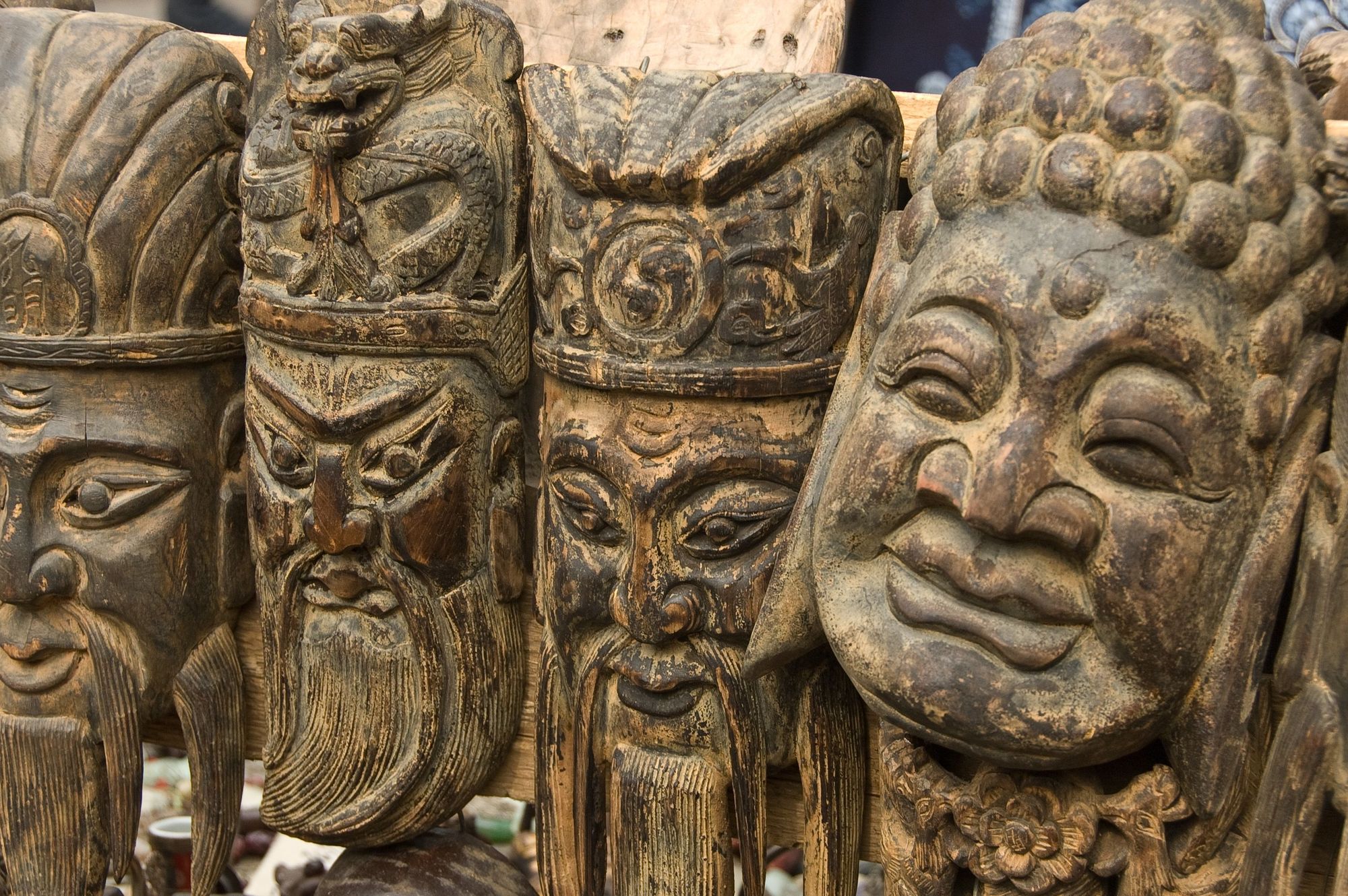and also real, imitation wooden mask carvings.