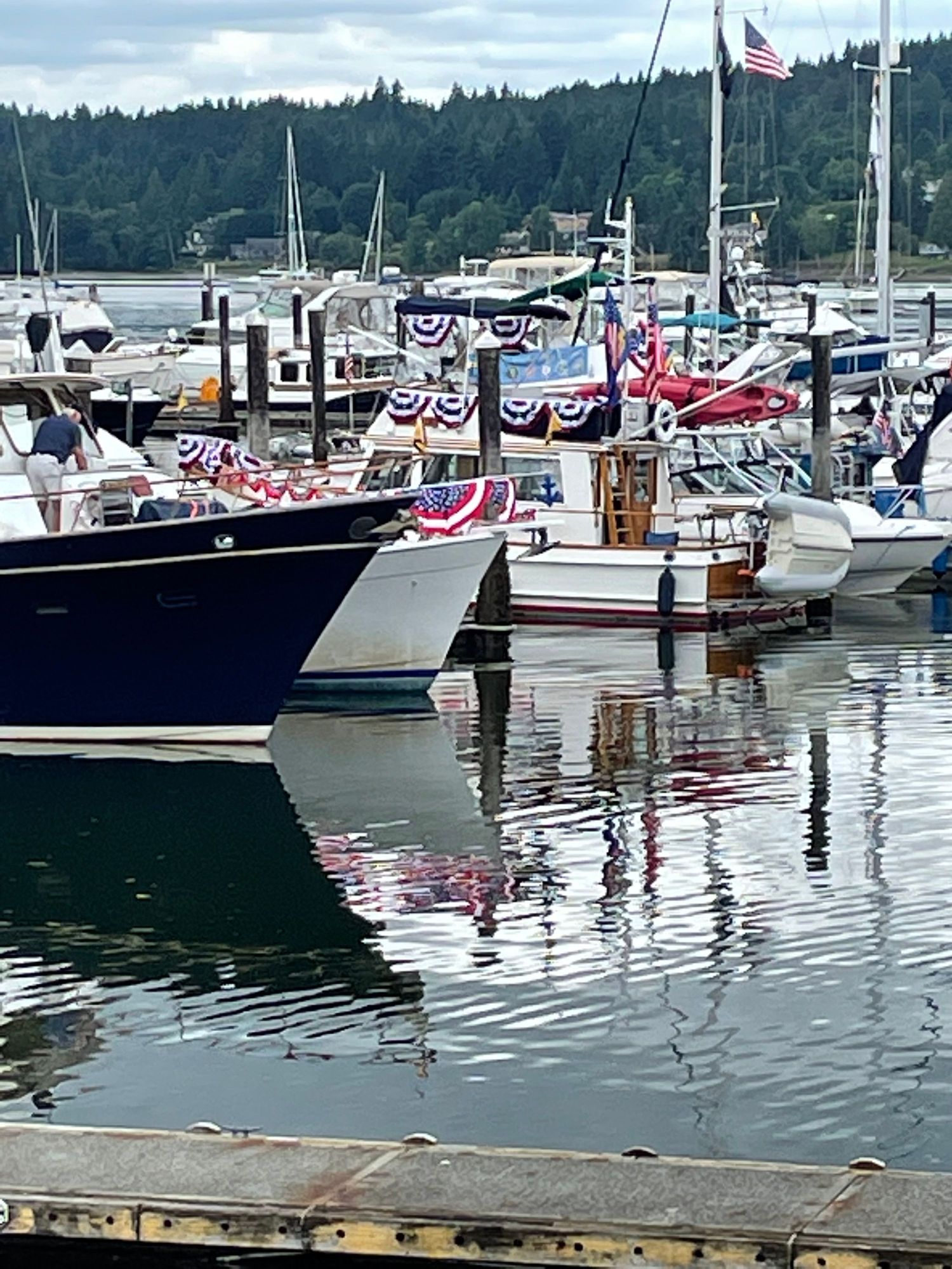 Boats in the Poulsbo, WA harbor getting ready for the 4th.
