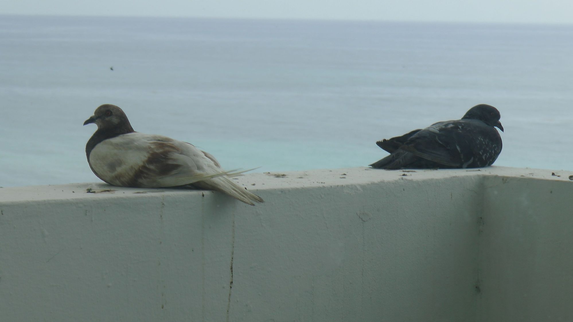 Here they are “nesting” on our balcony rail. Sorry it’s gross - the poops are terrible. I washed most of the poops off this afternoon.