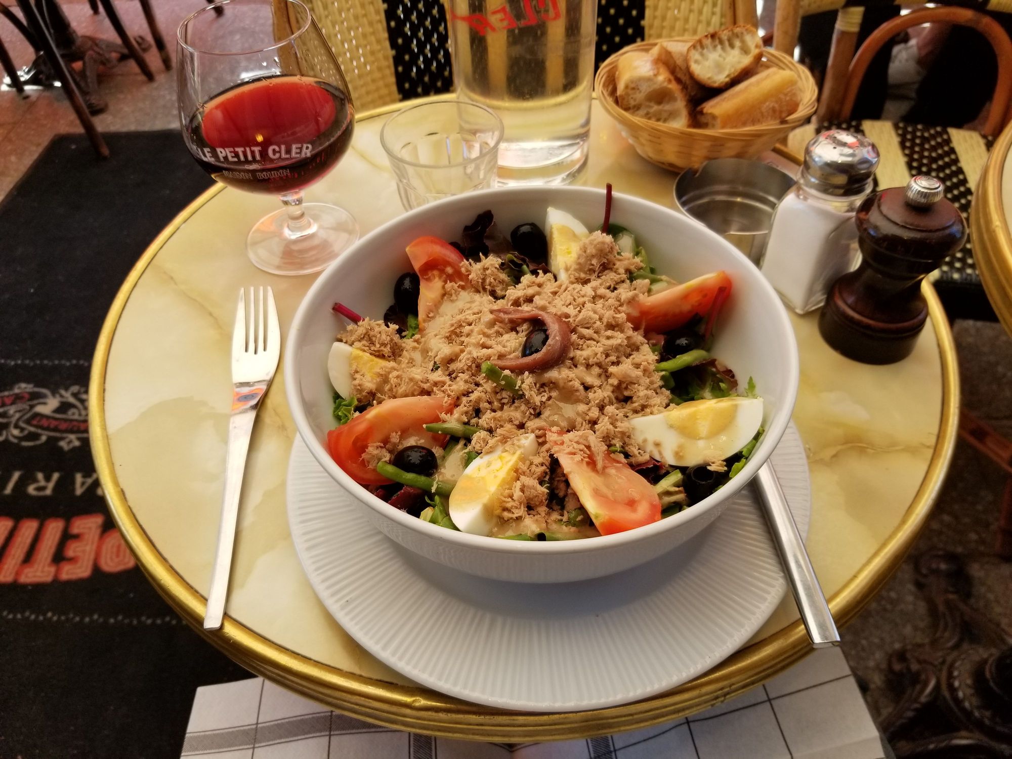 Salade Niçoise at Le Petit Cler on Rue Cler. Thin,aristocrat 🦌
