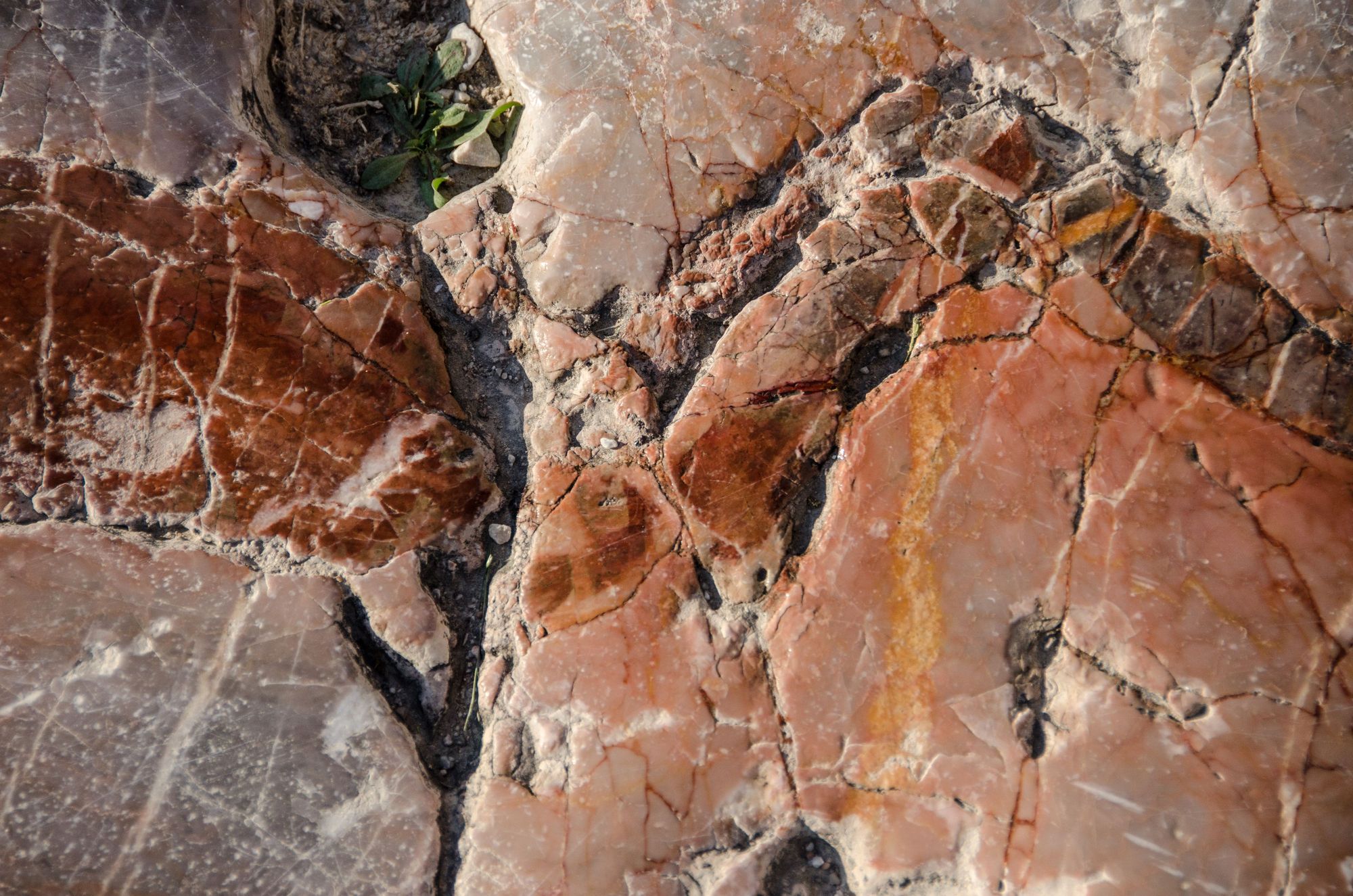 Wet marble section reveals interesting colours.