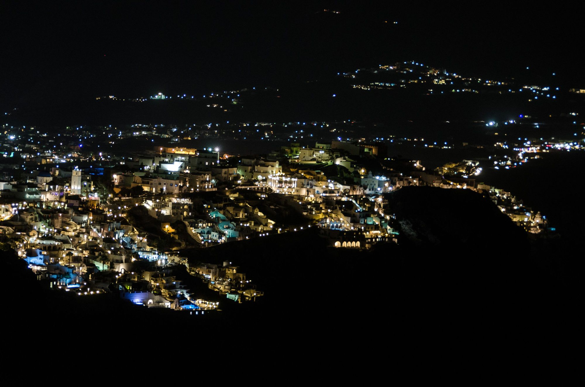 The main town of Fira remains the epicenter. It is always busy. We sought out the classic 'Nikolas' taverna there, in order to gift the waitstaff there something special. That was the enlarged photo portrait that I'd once taken of the owner back in '92. That owner was off on errands. With perfect dramatic timing, he arrived back at the taverna just we were leaving. Other diners gave a round of applause for the now-old man.
