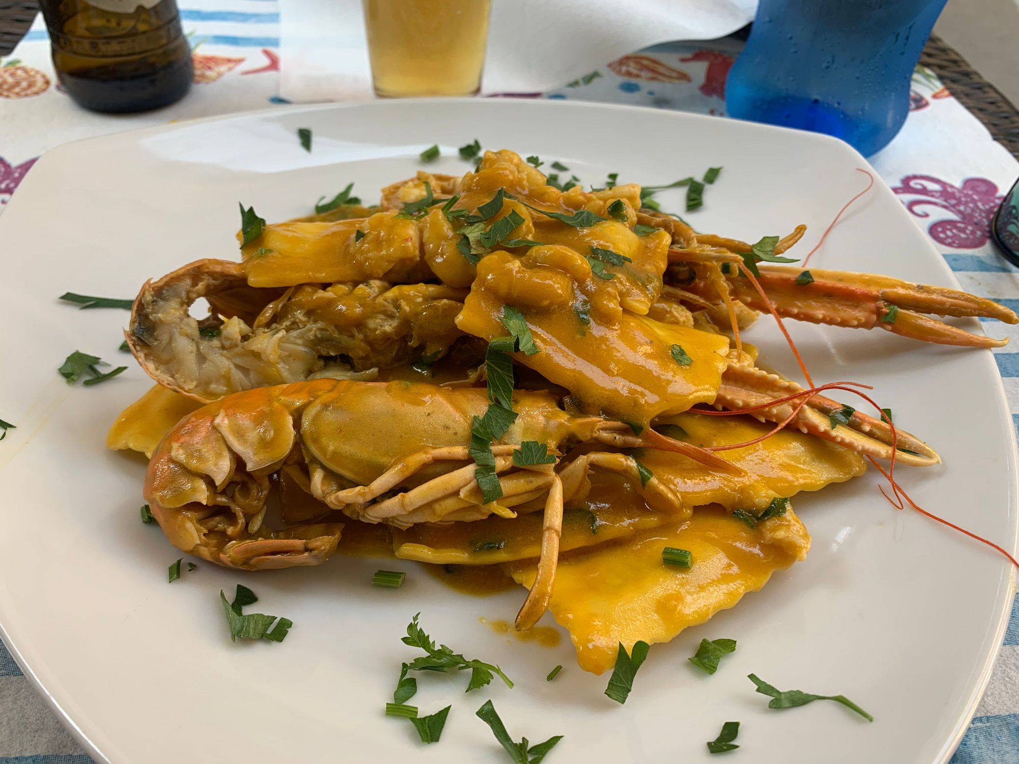 Ravioli with Baby Shrimp and Jumbo Prawns in a Pumpkin Sauce. Siracusa.