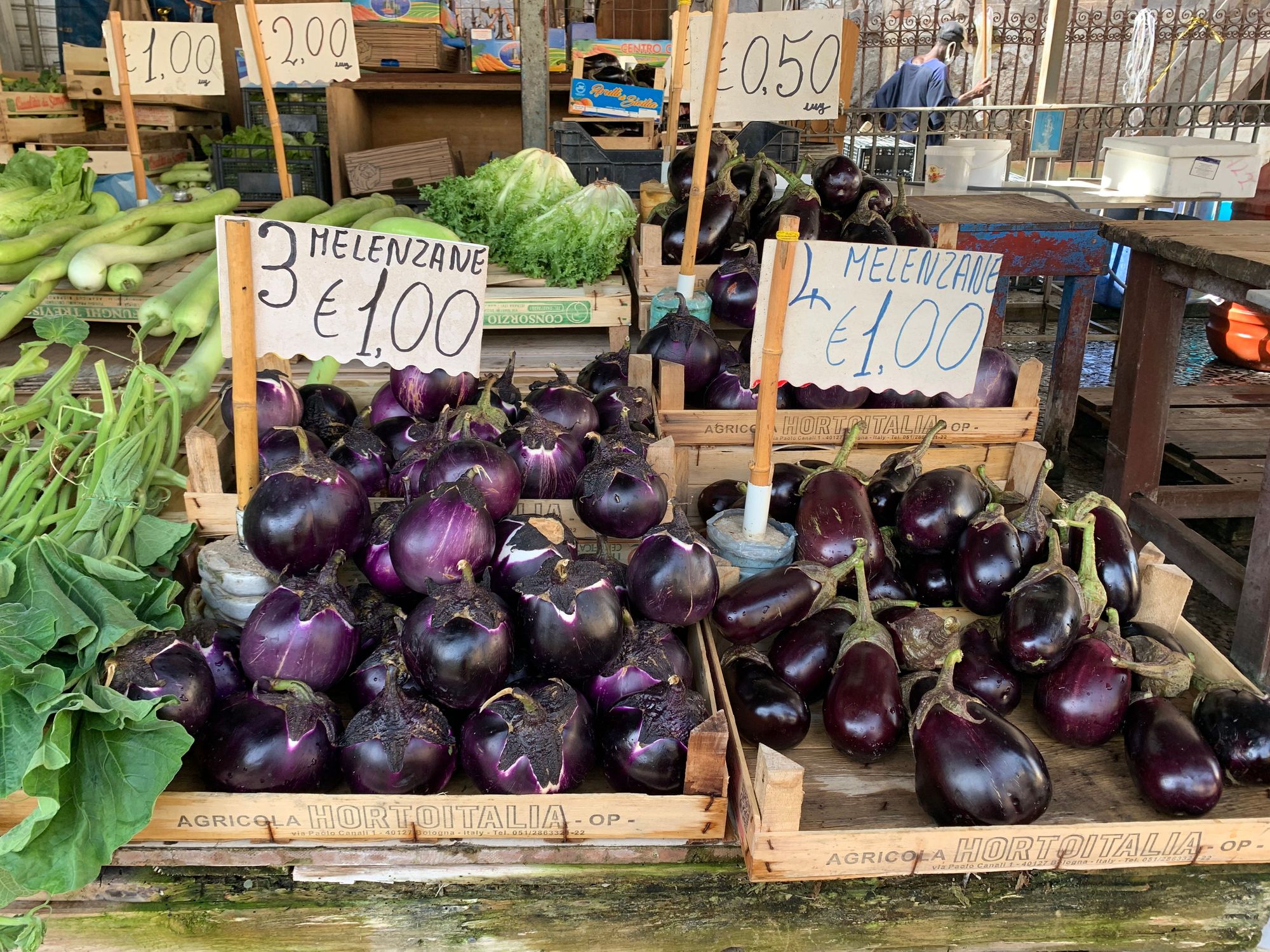 Melananze for sale in the Balaro market. (My Grandma from Naples called these “mullanjohn”. (Sp?????)