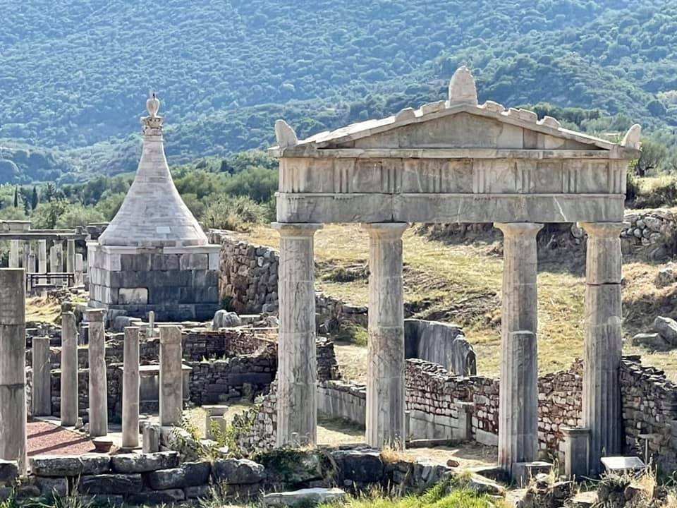Gate to the gymnasium, and a mausoleum