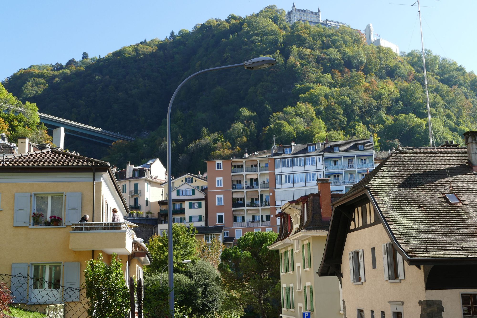 That is the Glion Hotel School up on the top of the mountain
