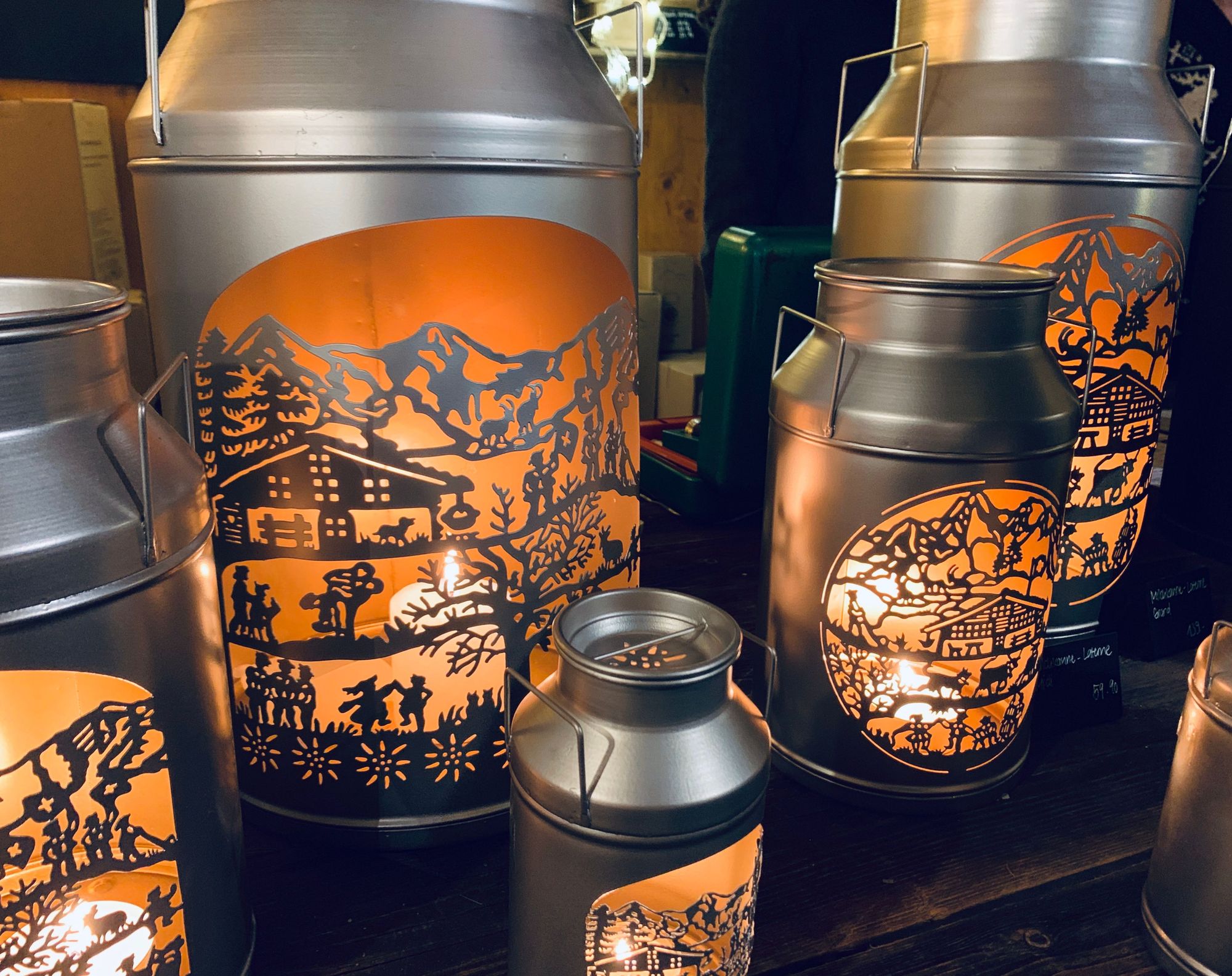 These appeared in the last few years -- milk cans that have been turned into Christmas decorations. You can put candles or fairy lights in them. Most of these are modern milk cans, but for slightly more, you can get them made from vintage milk cans. One of my favorite type of decorations.