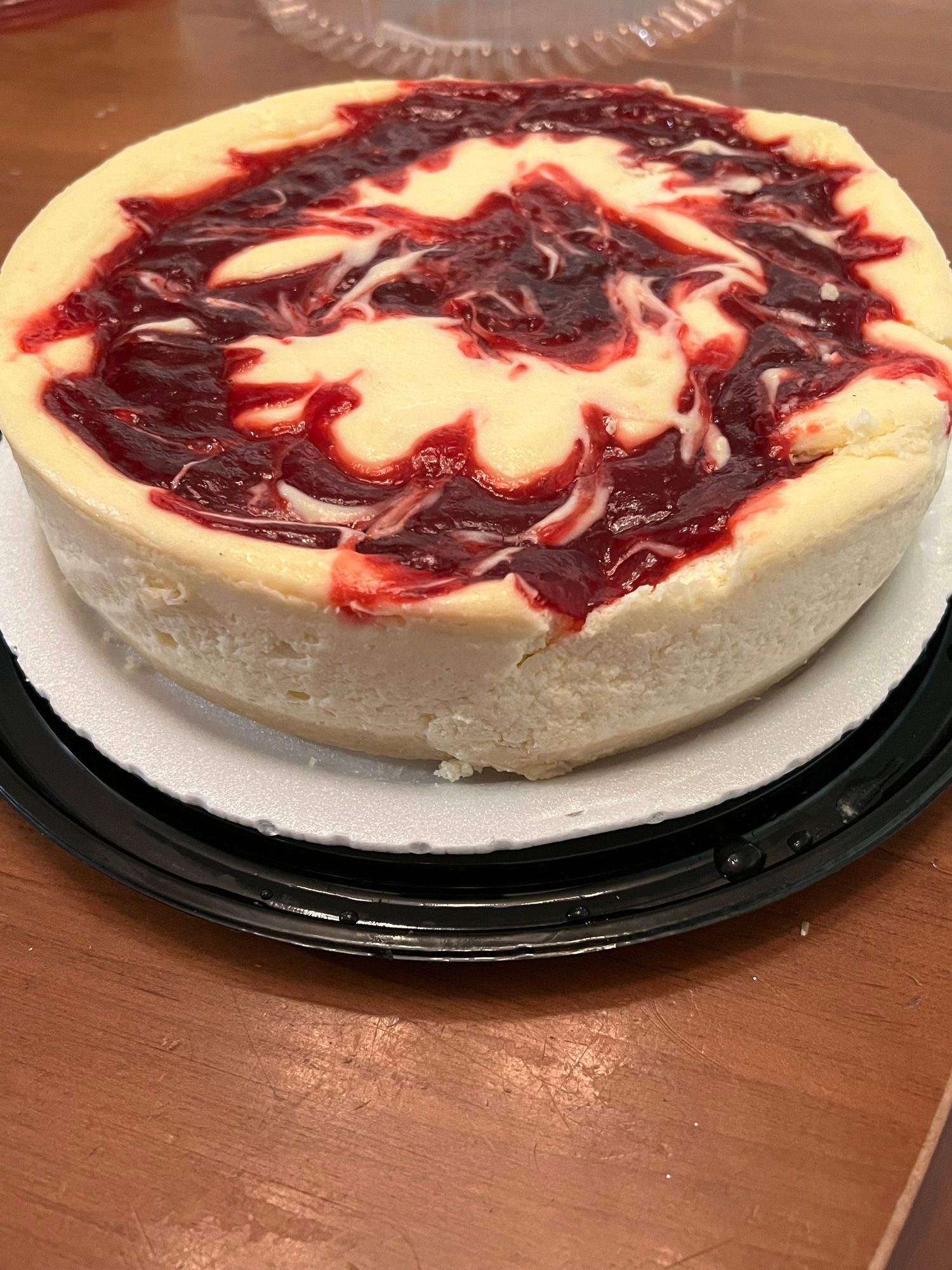 our dessert today, cheesecake with strawberry topping.
