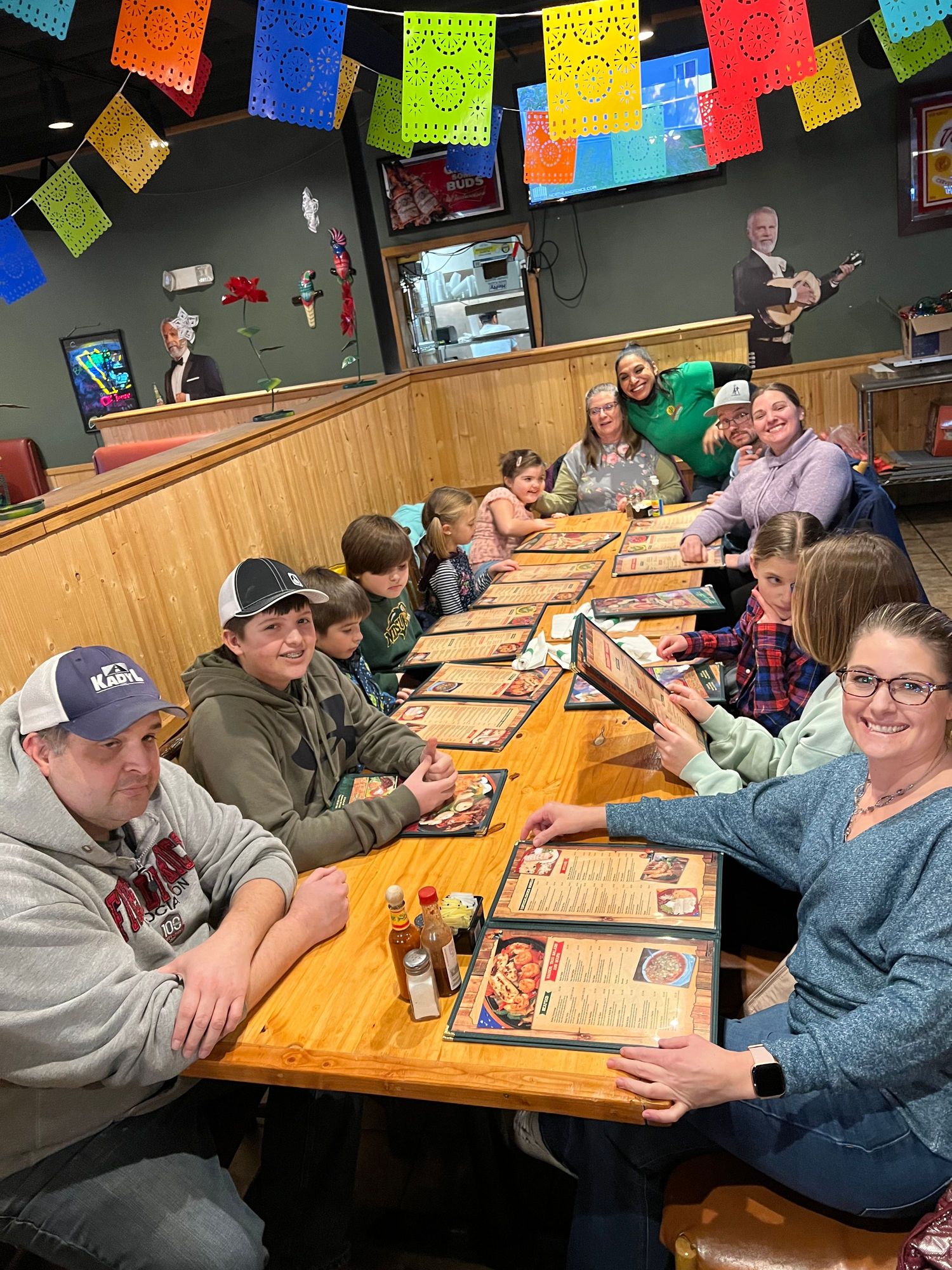 This is what I get to come home to. That's our next door neighbor Rosa in the green shirt.