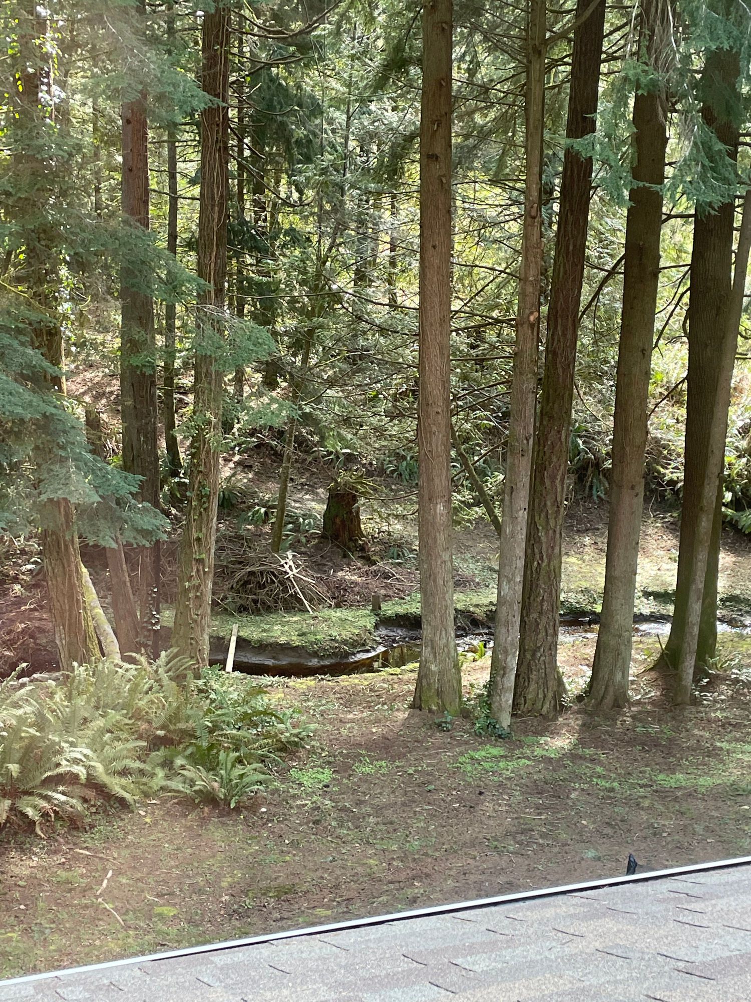 The view from my bedroom window at my son’s. They have 3 acres and that’s their creek. I’m in a forest alright. Hope not to see Sasquatch.