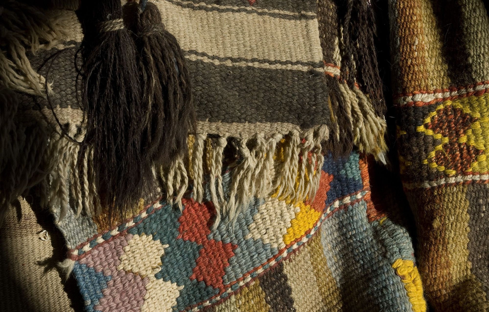 The women of the Bani Hamada cooperative in Madaba town, are known for their colorful 'bsat' handwoven, pure-wool rugs. They get natural crimson dye from 'kermes' plants, plus various yellows from turmeric and 'kurkun'.